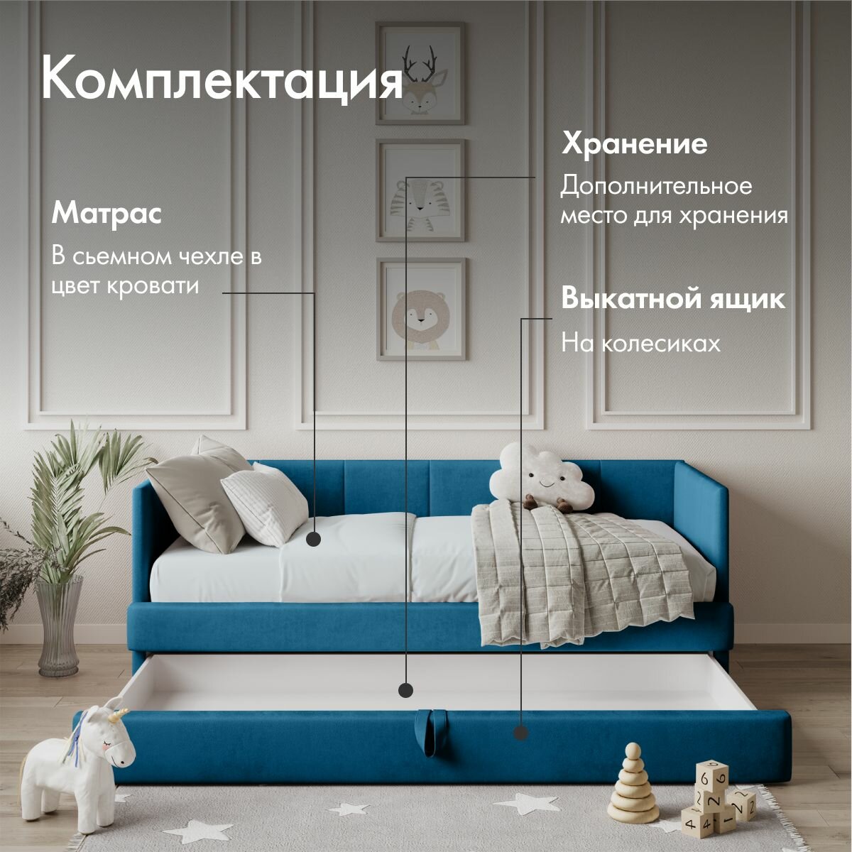 Детский диван кровать Челси 180х80 см голубой с матрасом, чехлом и выкатным ящиком Кровать детская от 3х лет 35 380 ₽