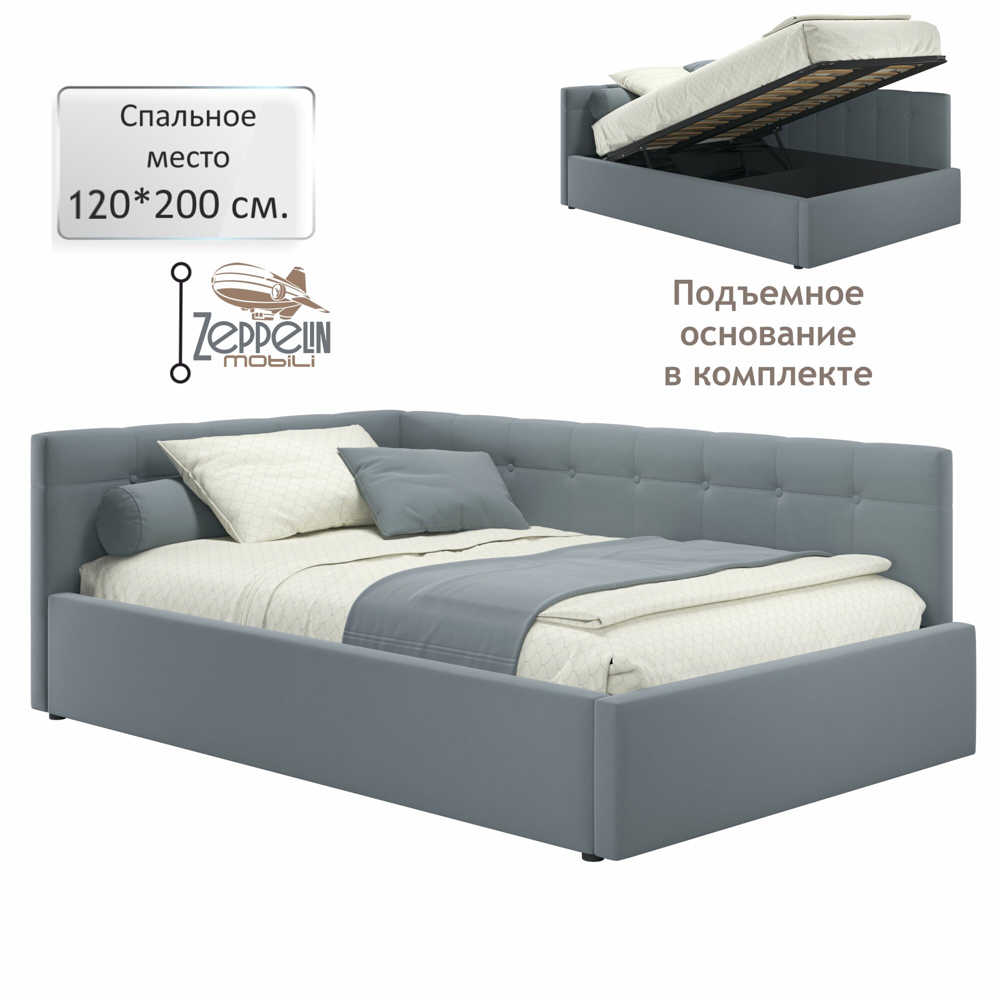 10 цен на Кровать-тахта угловая Bonna 120х200 серая подъемная, мягкая спинка из велюра, с ортопедическими ламелями, с ящиком для хранения