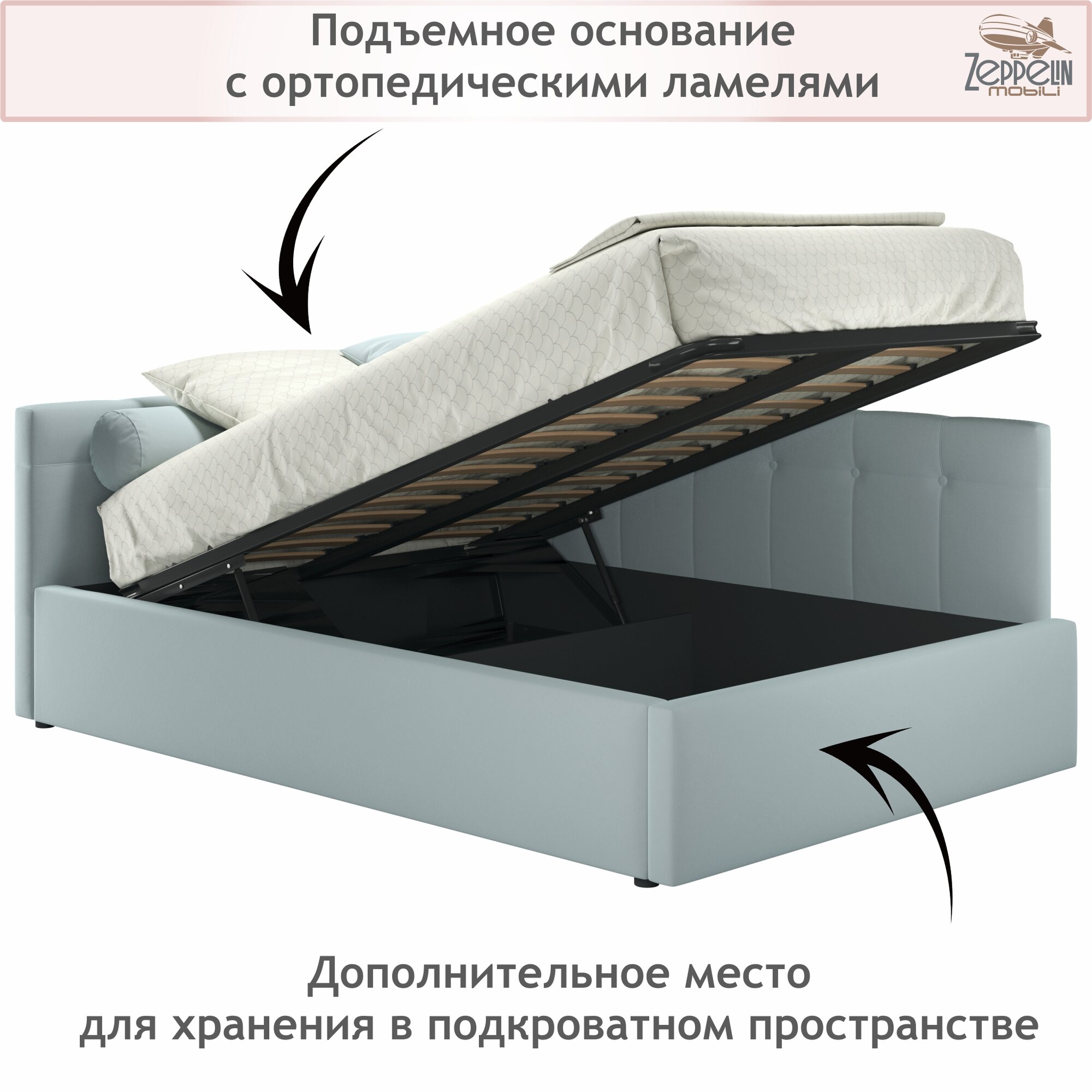 Кровать-тахта угловая Bonna 120х200 мята пастель подъемная, мягкая спинка из велюра, с ортопедическими ламелями, с ящиком для хранения информация: