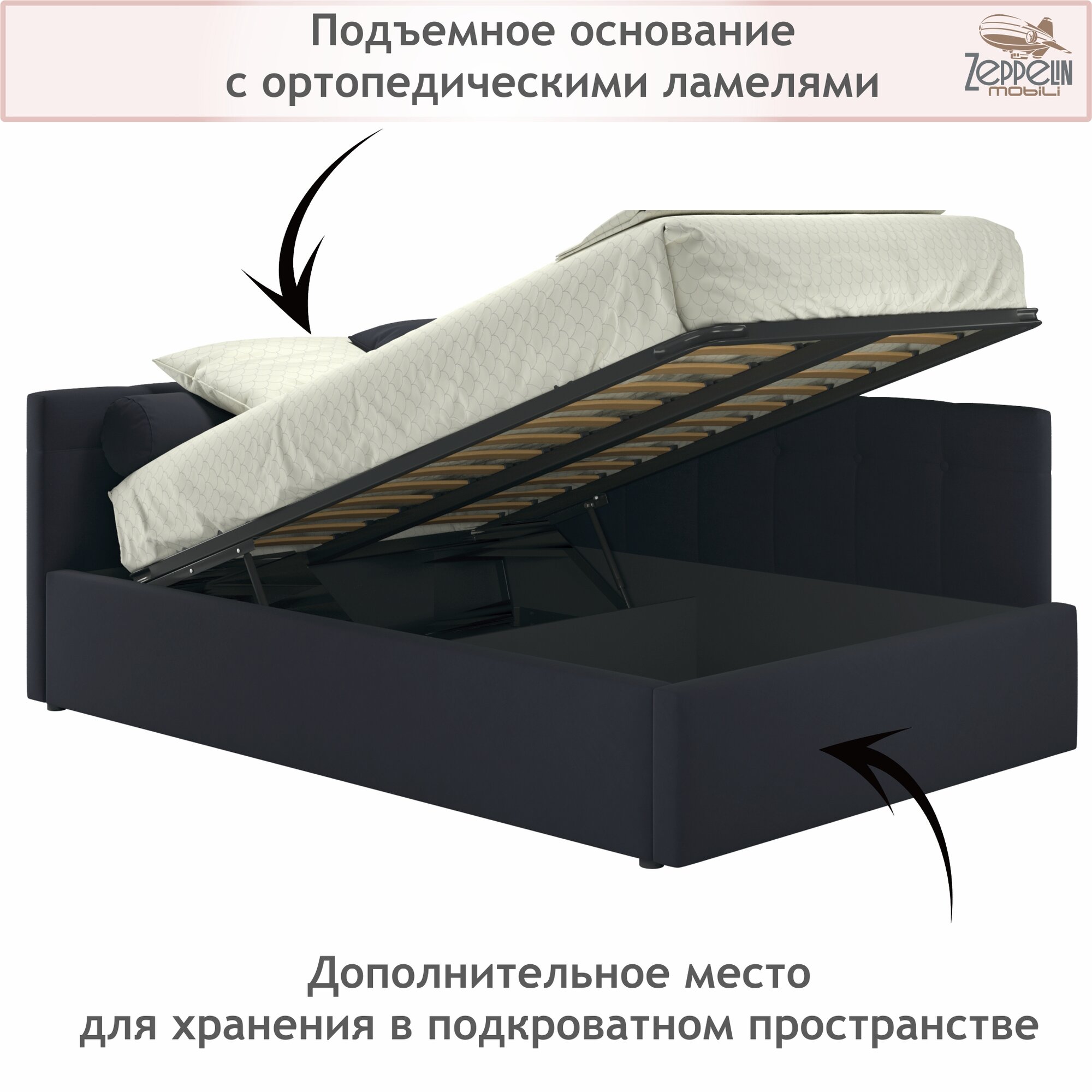 Кровать-тахта угловая Bonna 120х200 черная подъемная, мягкая спинка из велюра, с ортопедическими ламелями, с ящиком для хранения информация: