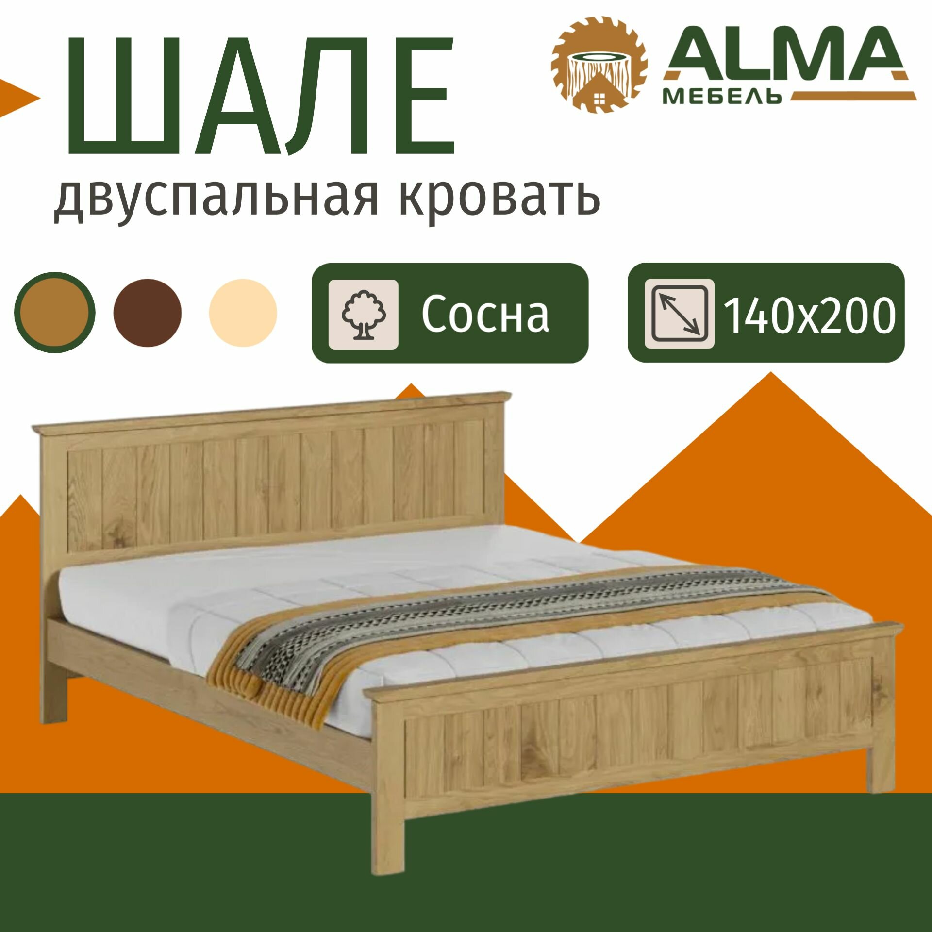 Отзывы на Двуспальная кровать 140х200 Шале деревянная, из сосны, цвет Дуб