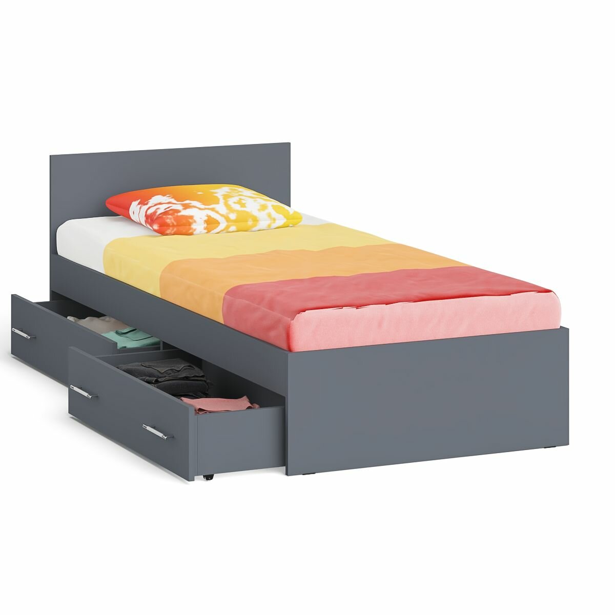 Кровать с ящиками Мори 900 цвет графит/белый, ШхГхВ 93,5х203,5х70 см, сп. м. 900х2000 мм, без матраса, основание есть 13 137 ₽