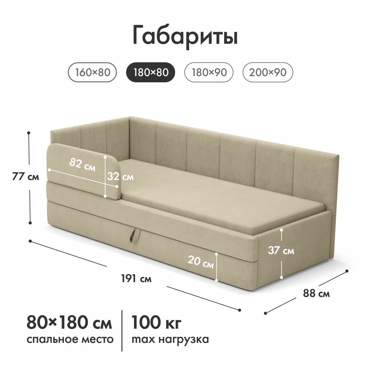 10 цен на Детский диван кровать Челси Лайт 180х80 см бежевый с матрасом, чехлом, выкатным ящиком и бортиком Кровать детская от 3х лет