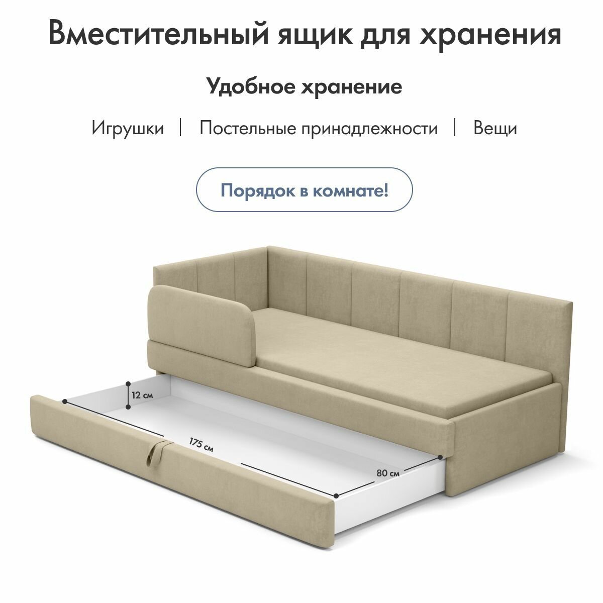 Детский диван кровать Челси Лайт 180х80 см бежевый с матрасом, чехлом, выкатным ящиком и бортиком Кровать детская от 3х лет информация: