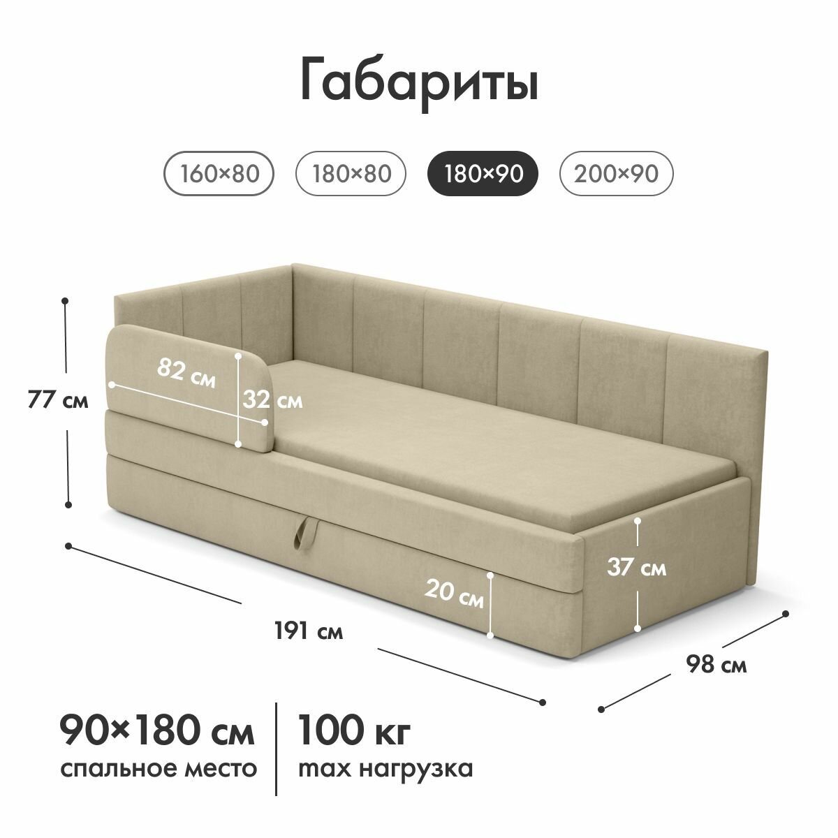 10 цен на Детский диван кровать Челси Лайт 180х90 см бежевый с матрасом, чехлом, выкатным ящиком и бортиком Кровать детская от 3х лет