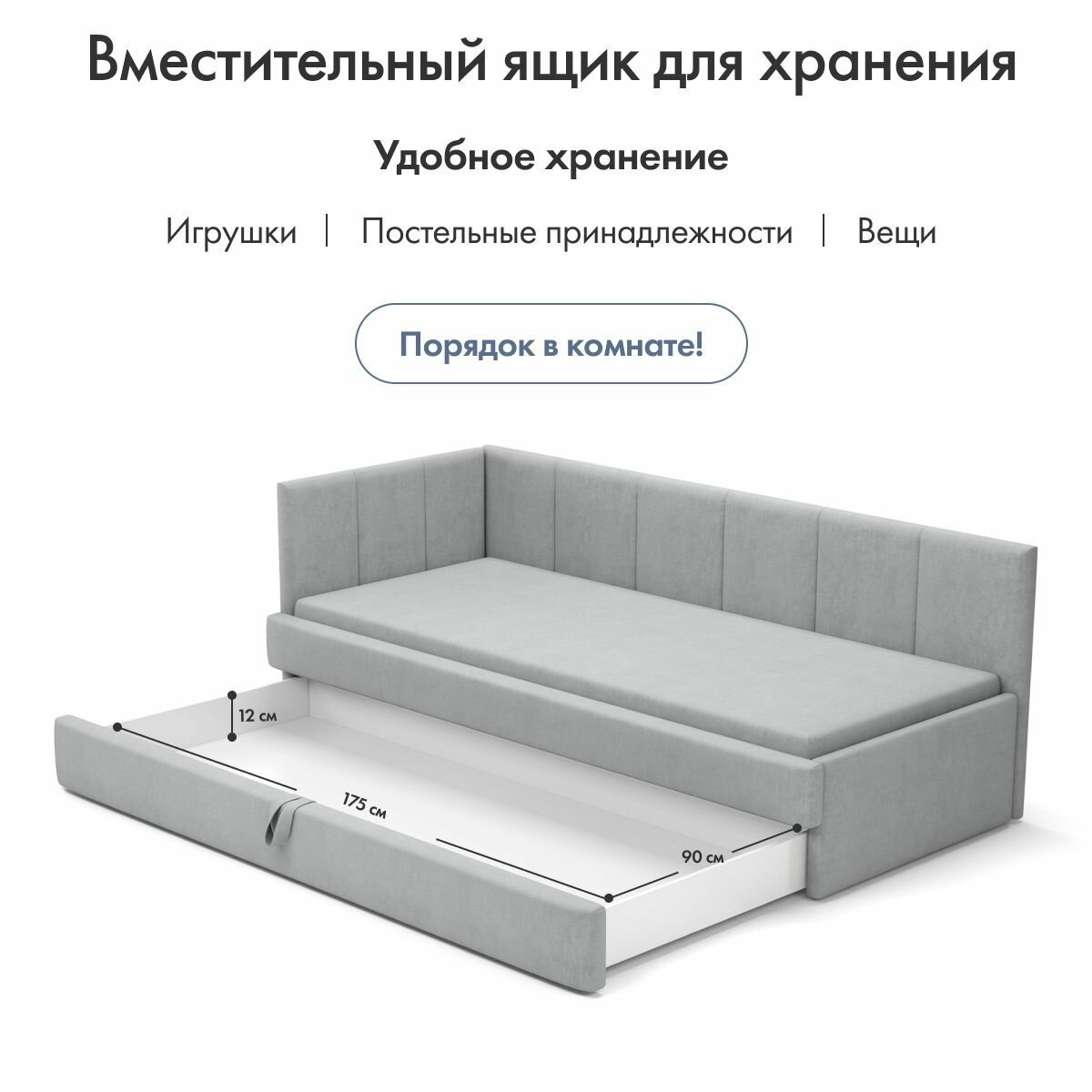 Детский диван кровать Челси Лайт 180х90 см серый с матрасом, чехлом и выкатным ящиком Кровать детская от 3х лет информация: