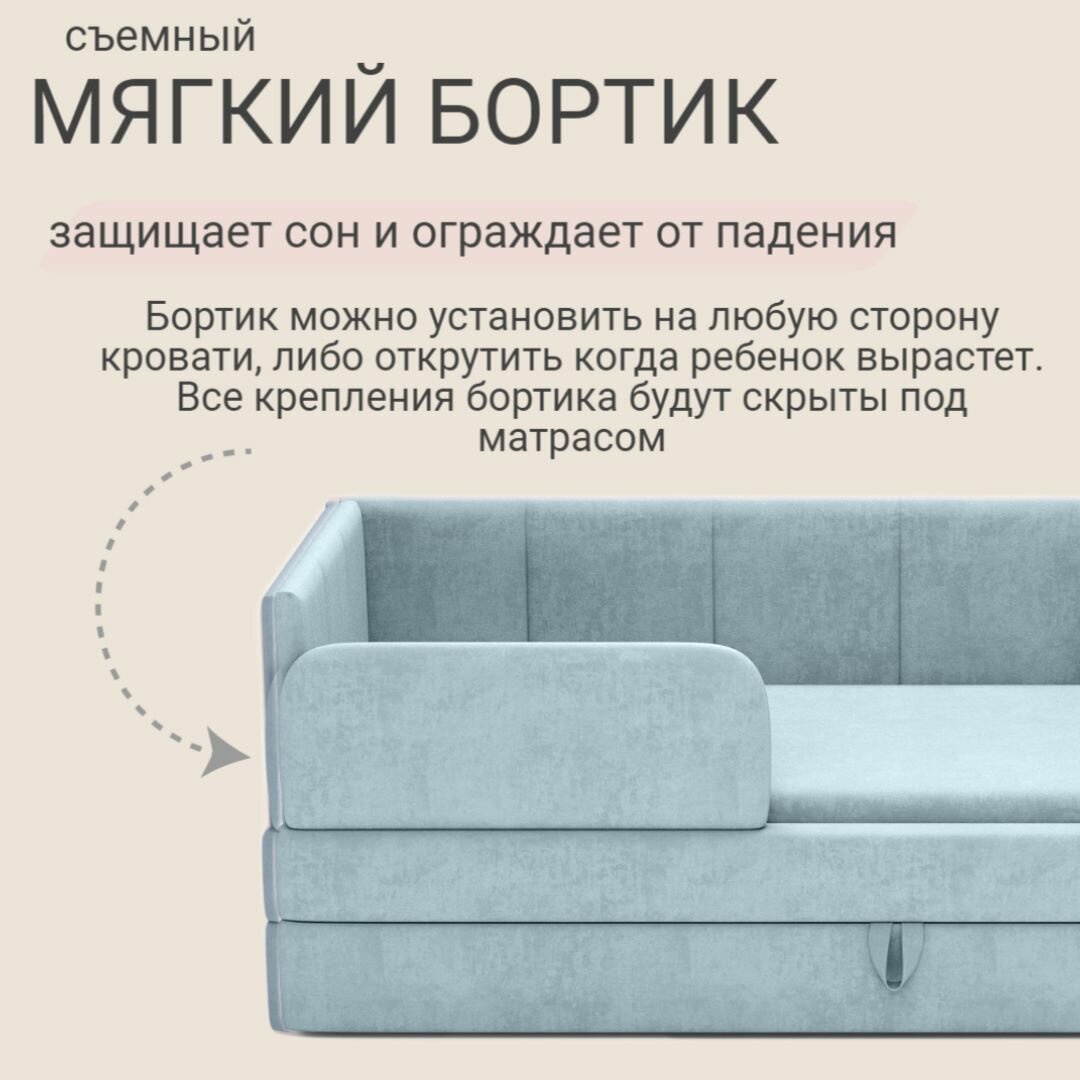 Детский диван кровать Челси Лайт 160х80 см морская волна с матрасом, чехлом, выкатным ящиком и бортиком Кровать детская от 3х лет 33 254 ₽