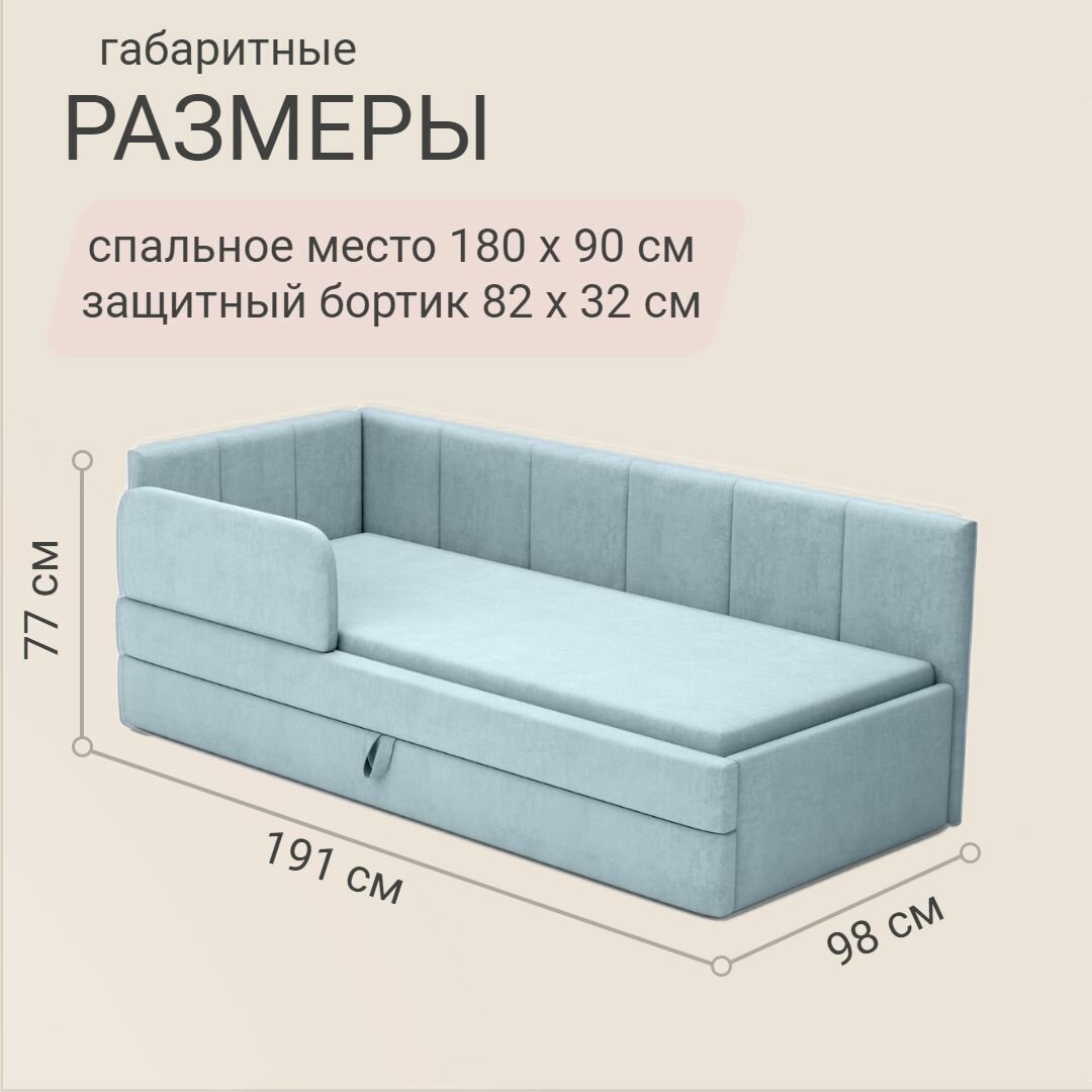 Детский диван кровать Челси Лайт 180х90 см голубой с матрасом, чехлом, выкатным ящиком и бортиком Кровать детская от 3х лет информация: