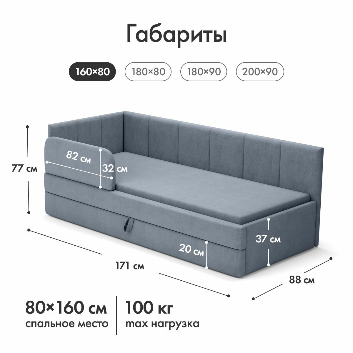 Мягкий диван кровать детская/ подростковая софа с подъемным механизмом асти 90х200 правая