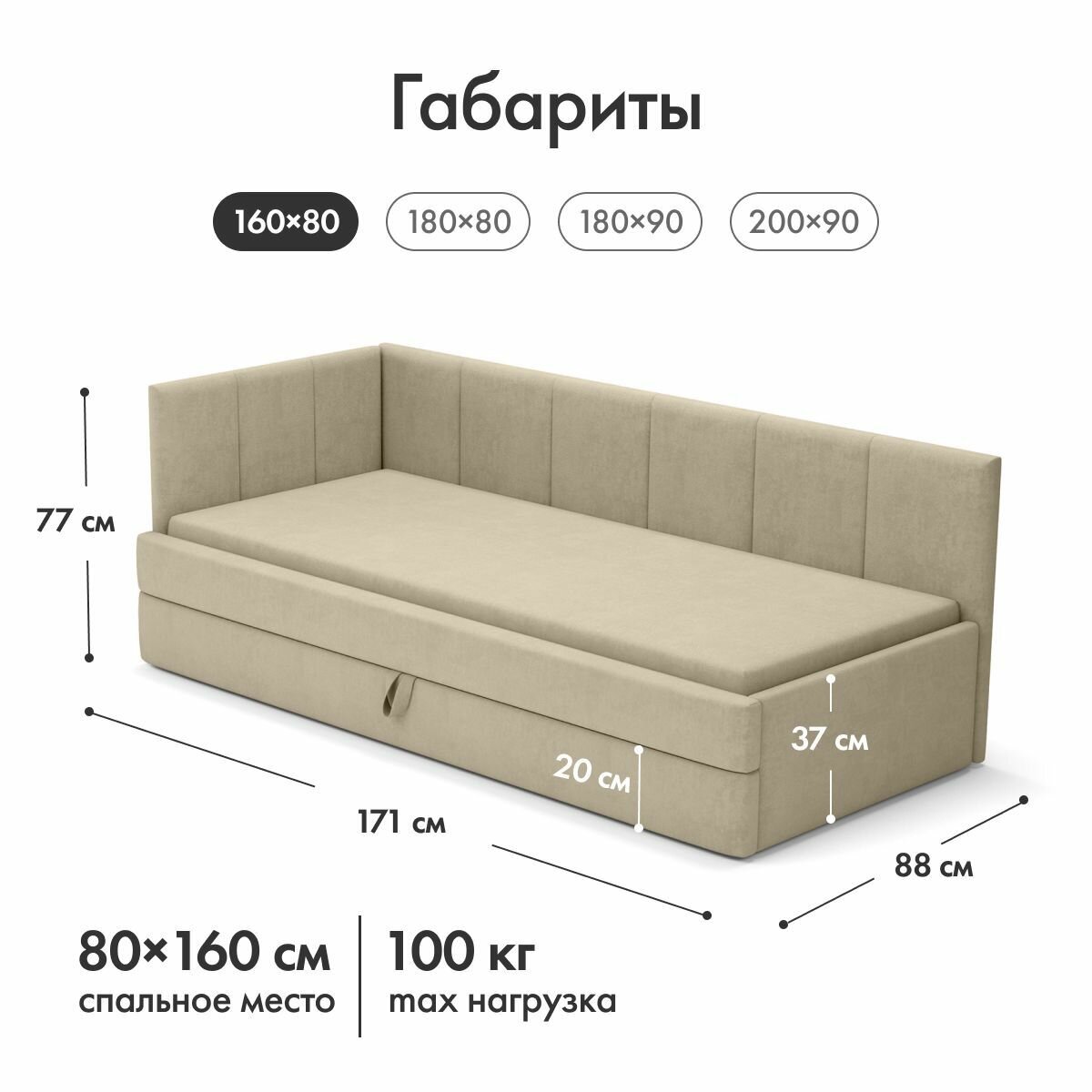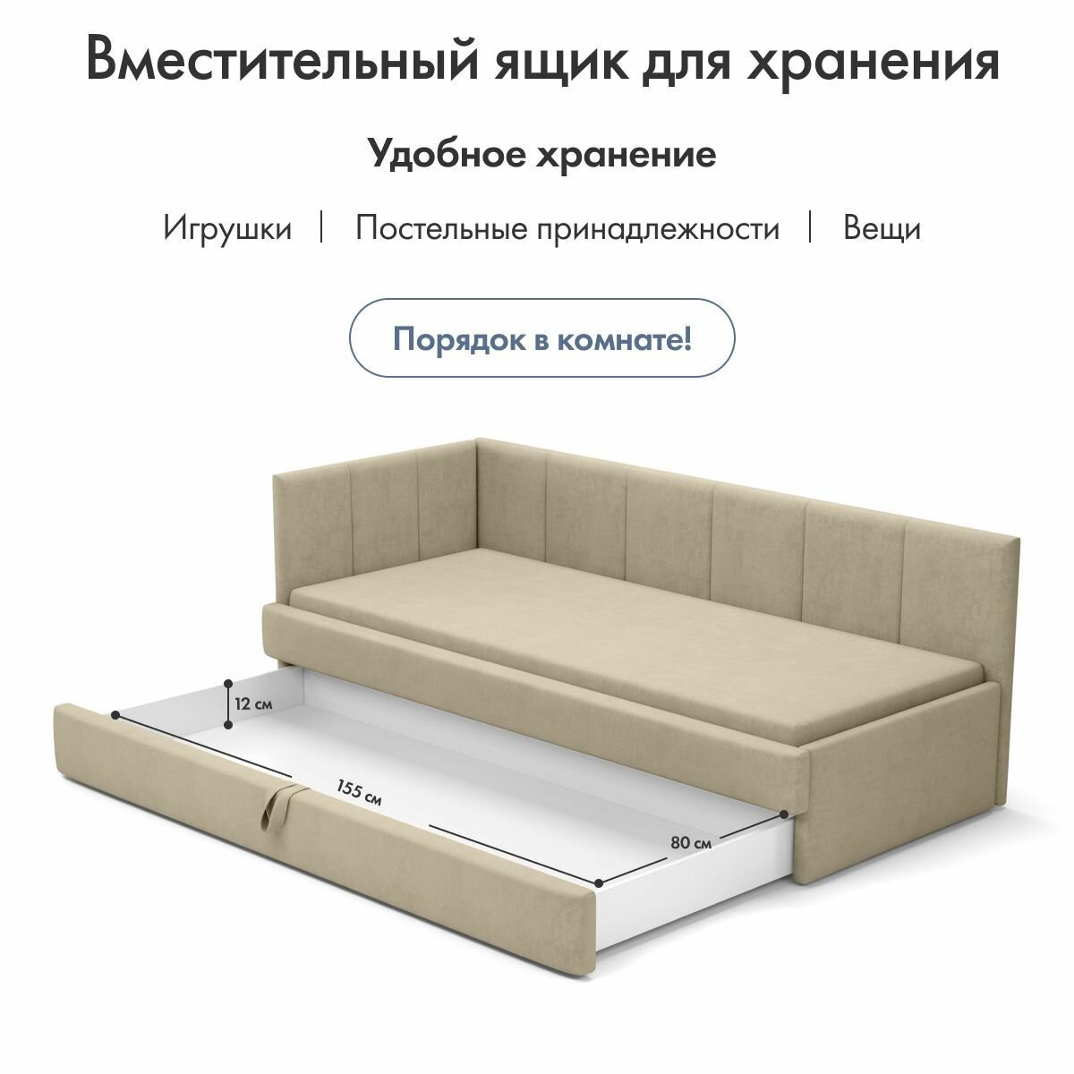 10 цен на Детский диван кровать Челси Лайт 160х80 см бежевый с матрасом, чехлом и выкатным ящиком Кровать детская от 3х лет