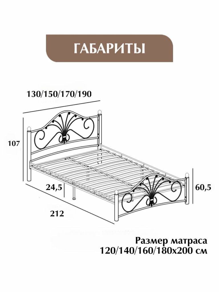 Двуспальная кровать металлическая, кованая черная, 160х200 информация: