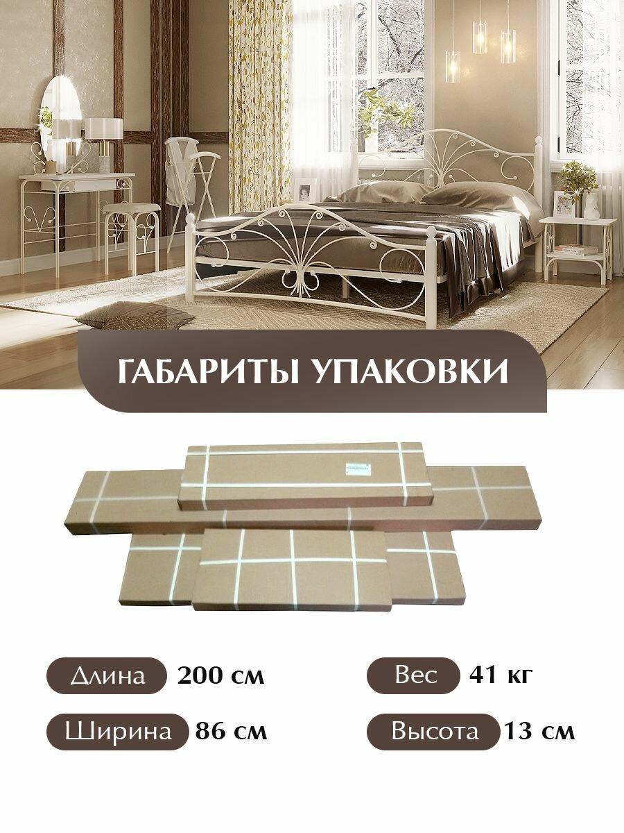 Двуспальная кровать металлическая, кованая, кремово-белая, 140х200 информация: