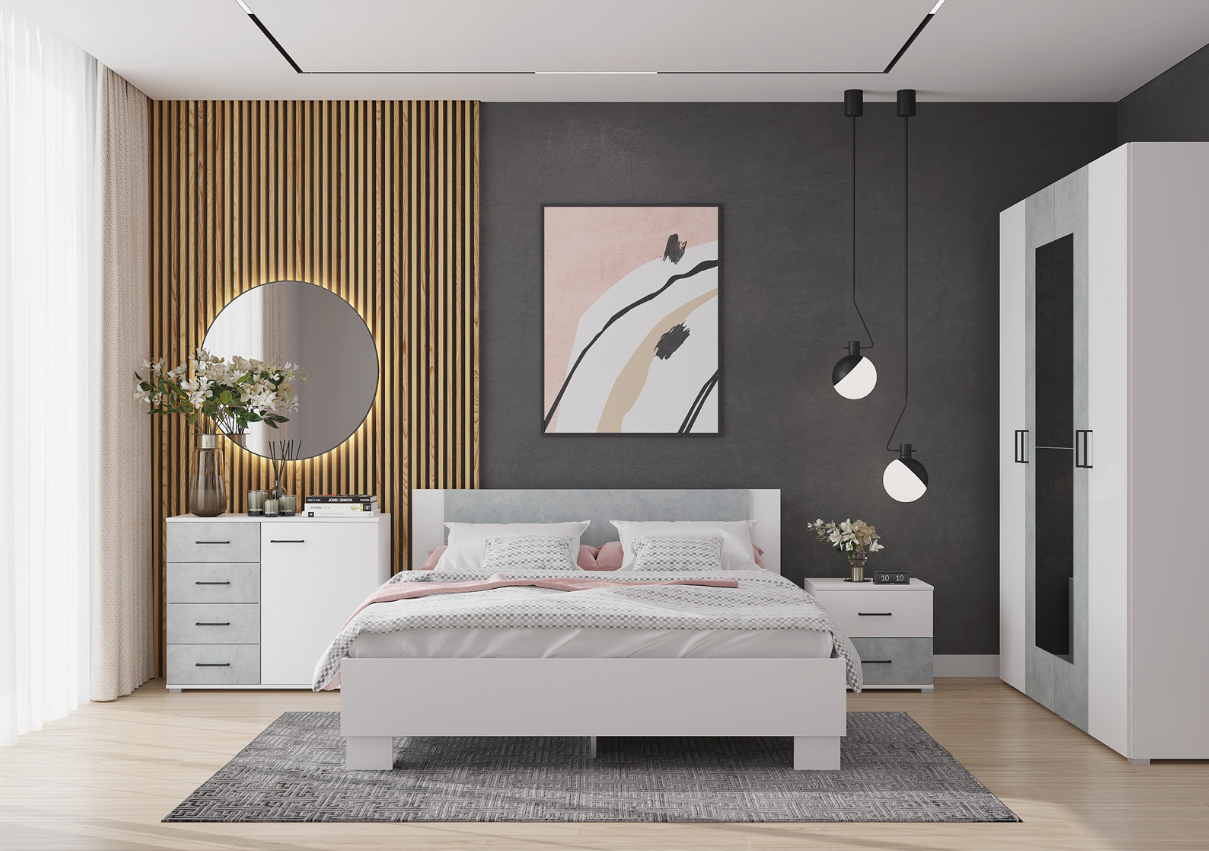 Кровать "NOVA" 140х200 белый/бетон + матрас. Горизонт информация: