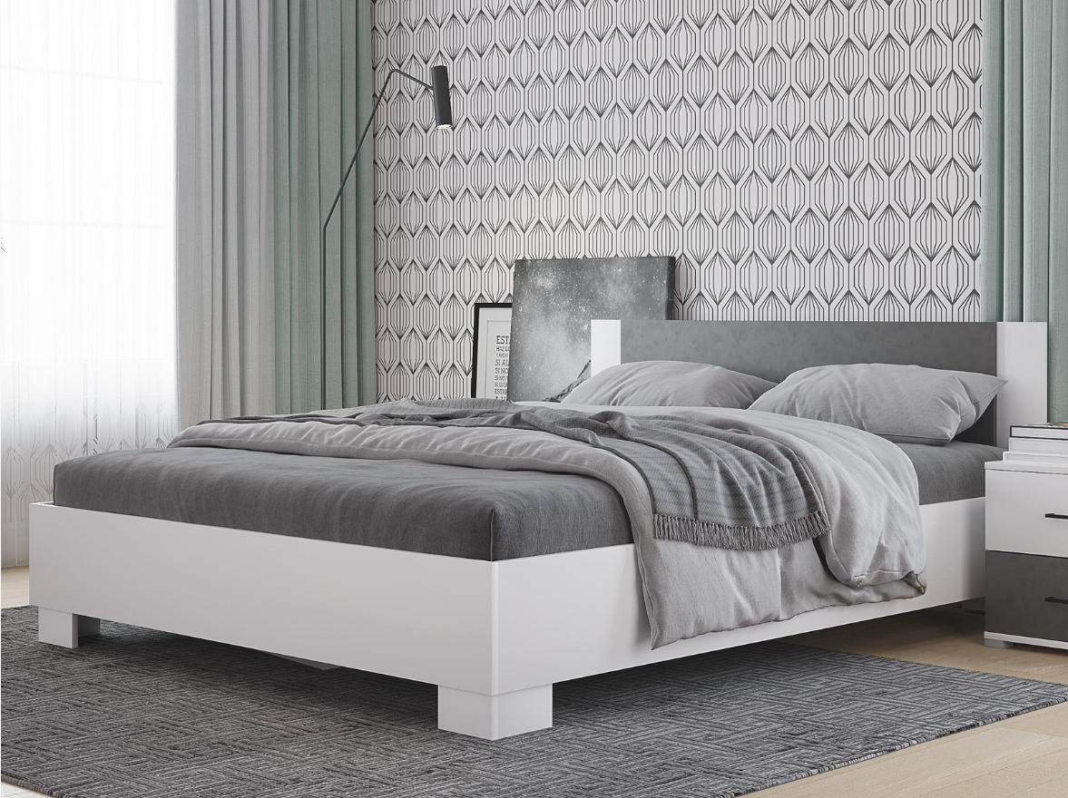10 цен на Кровать "NOVA" 140х200 белый/бетон + матрас. Горизонт