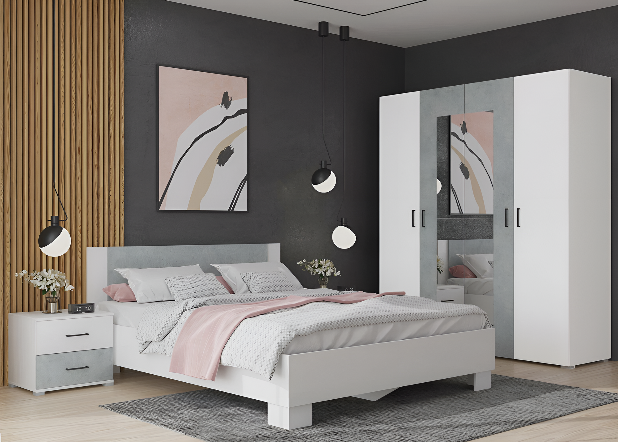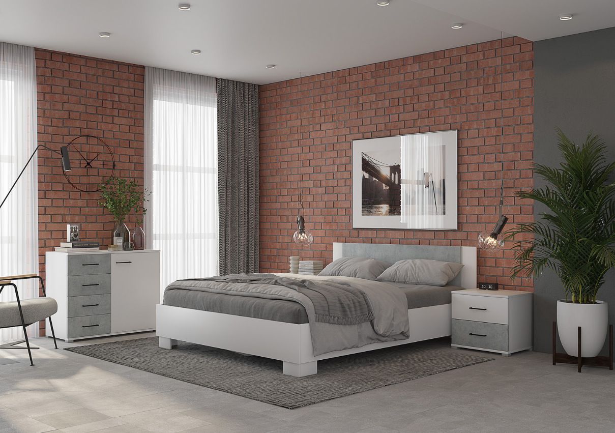 Кровать "NOVA" 160х200 белый/бетон + матрас. Горизонт информация: