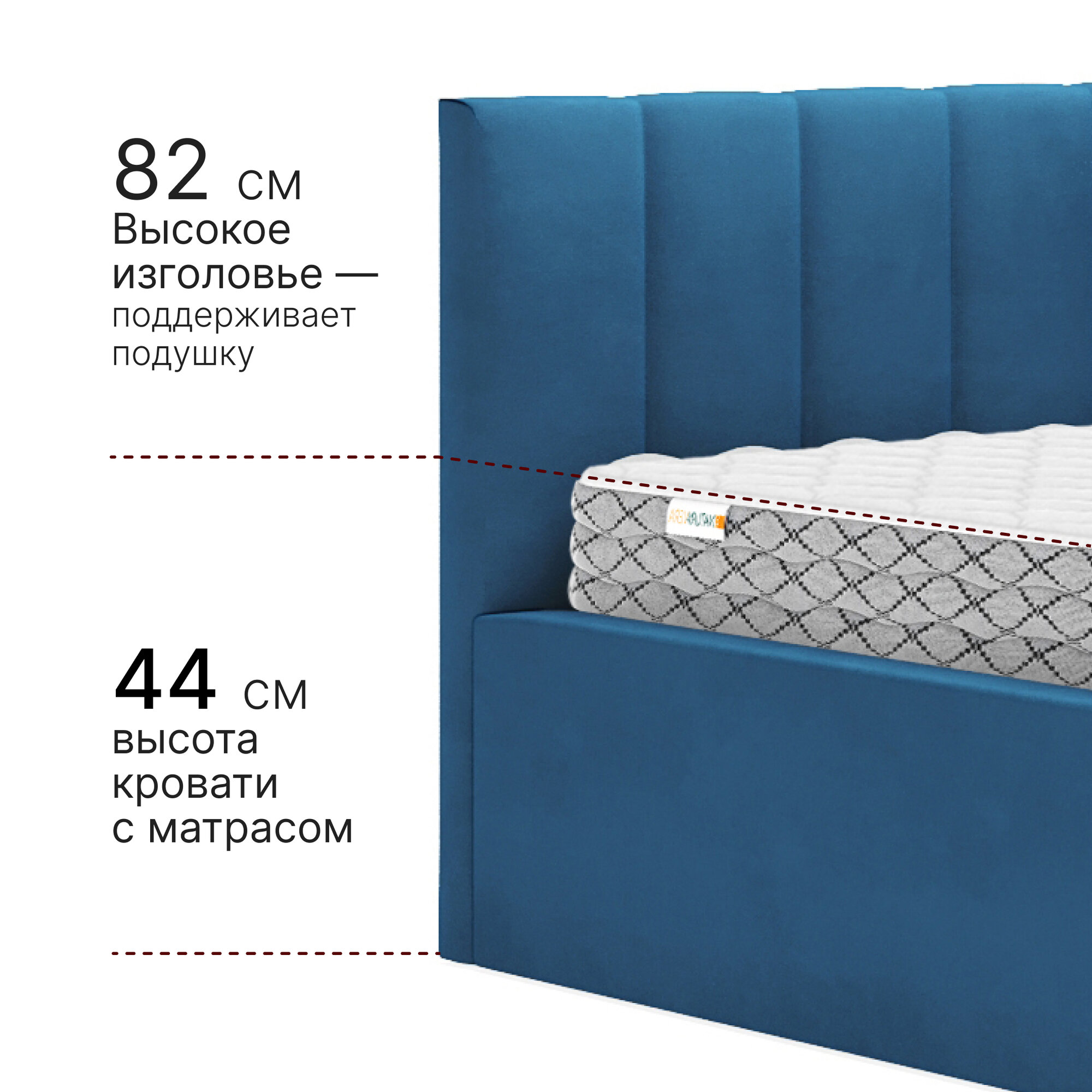 Кровать 90х200 + матрас, c подъемным механизмом и ящиком для белья Mia, велюр, синий информация: