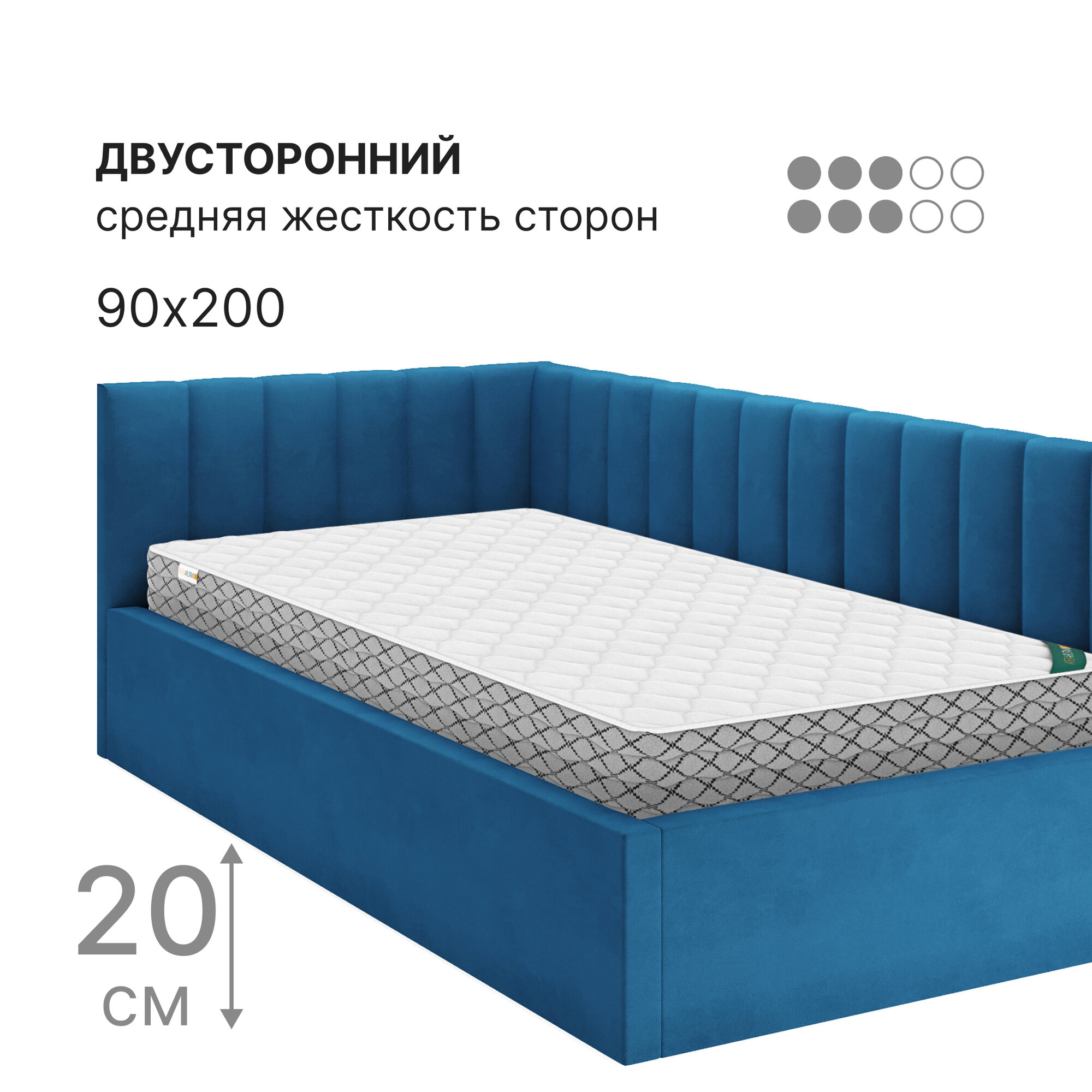 Отзывы на Кровать 90х200 + матрас, c подъемным механизмом и ящиком для белья Mia, велюр, синий