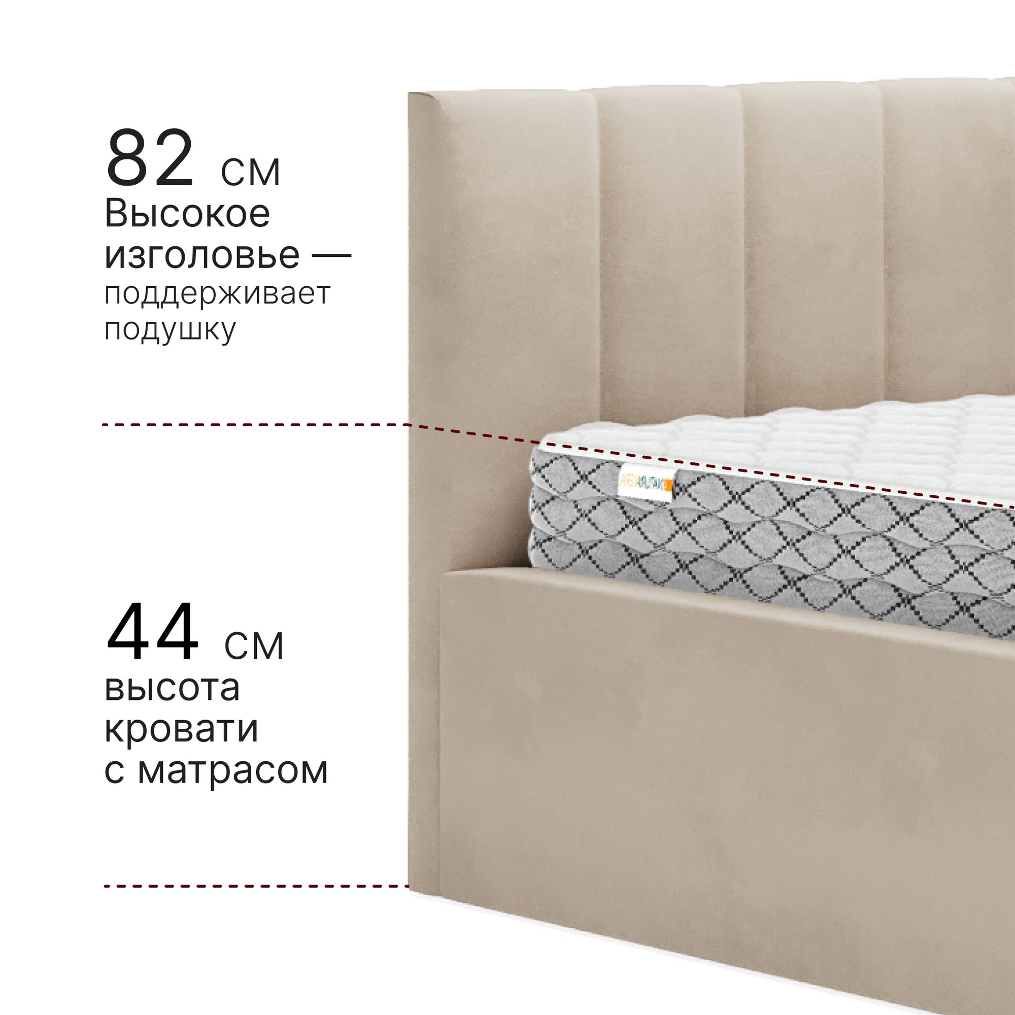 Отзывы на Кровать 90х200 + матрас, c подъемным механизмом и ящиком для белья Mia, велюр, бежевый