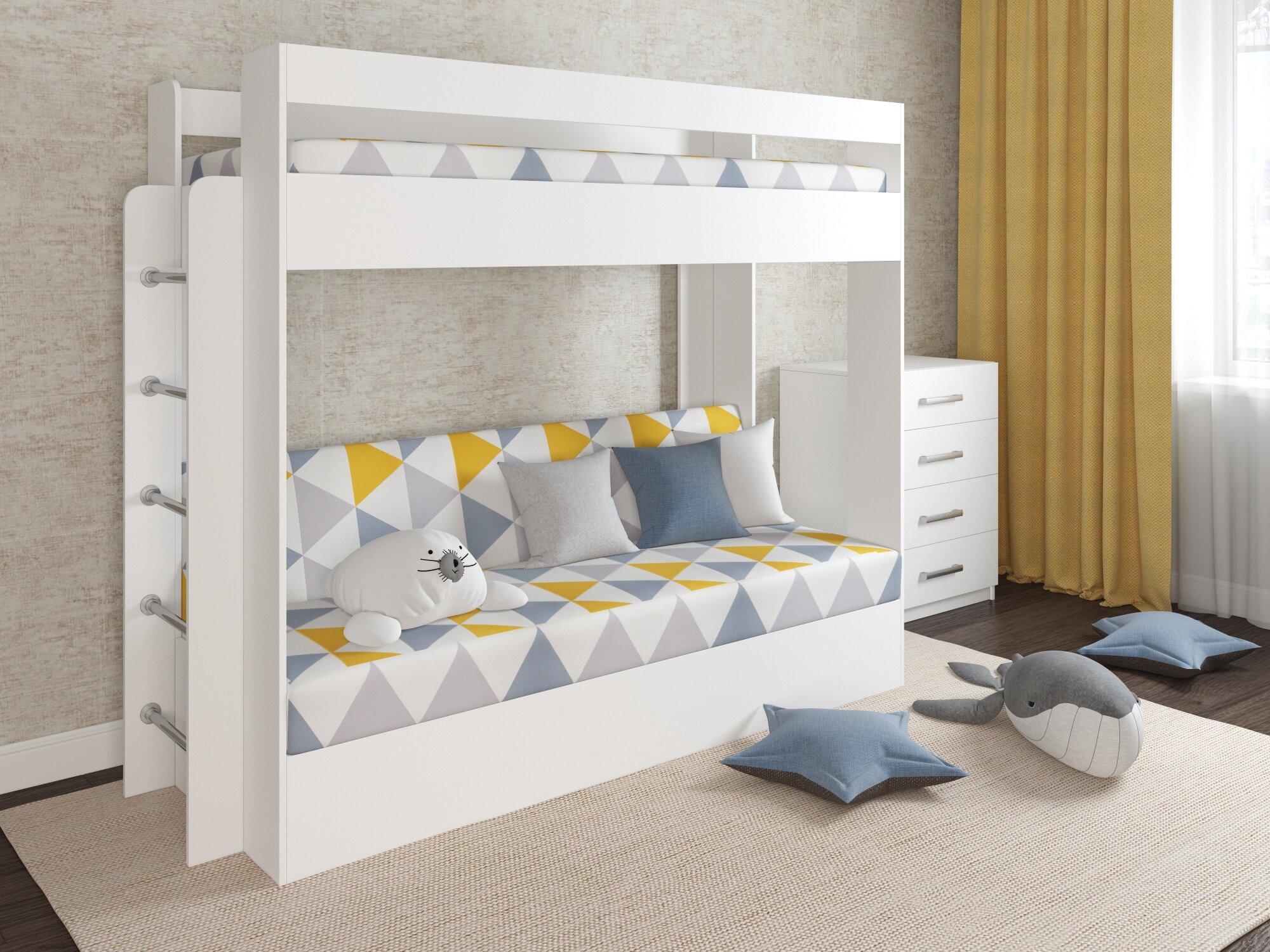10 цен на Кровать двухъярусная с диваном Есэндвич Лаворо (Белый/Принт Otto Yellow)