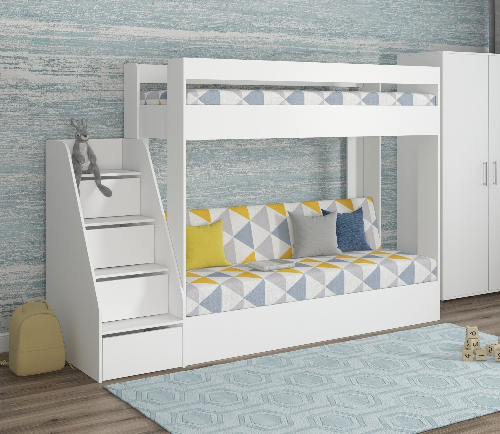 Кровать двухъярусная с диваном и лестницей-комодом Есэндвич Лаворо (Белый/Savana Plus Dimrose) 56 890 ₽