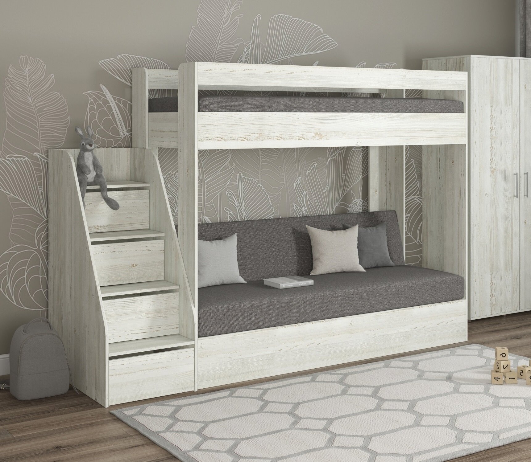 Кровать двухъярусная с диваном Есэндвич Лаворо (Анкор белый/Бетон пайн экзотик/Savana Latte) 42 390 ₽