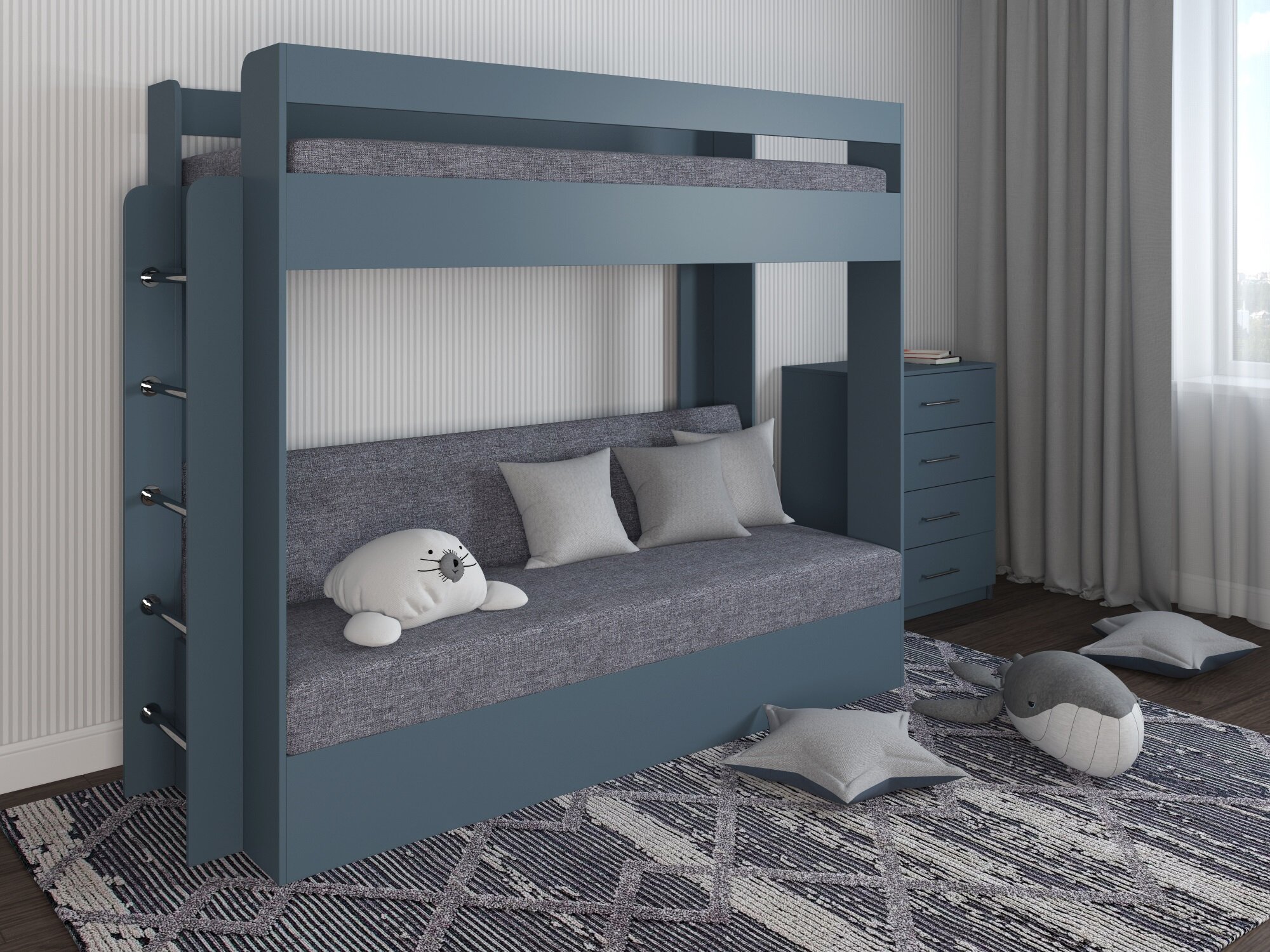 Кровать двухъярусная с диваном Есэндвич Лаворо (Маренго/Savana Grey) информация: