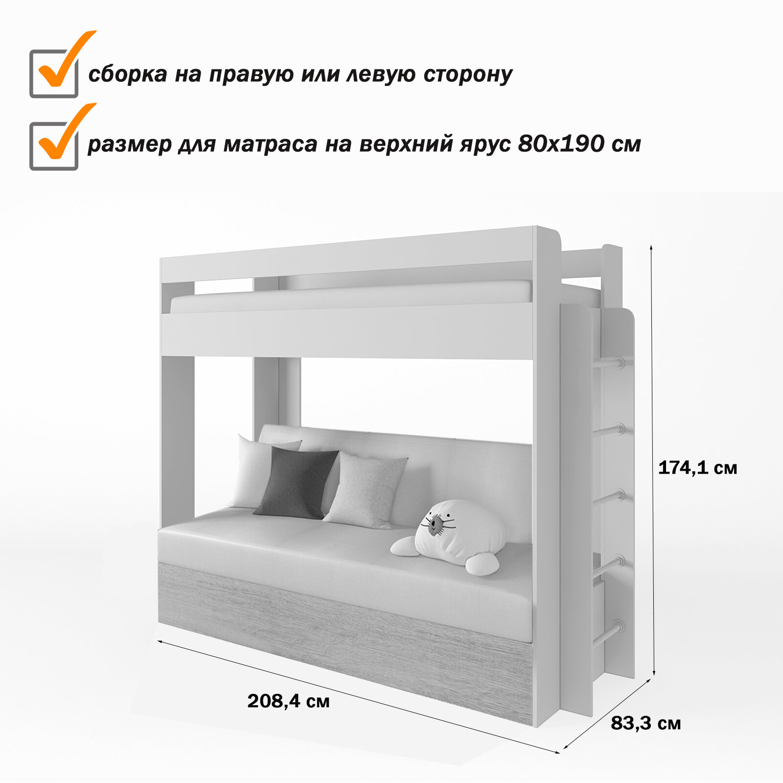 Отзывы на Кровать двухъярусная с диваном Есэндвич Лаворо (Маренго/Savana Grey)