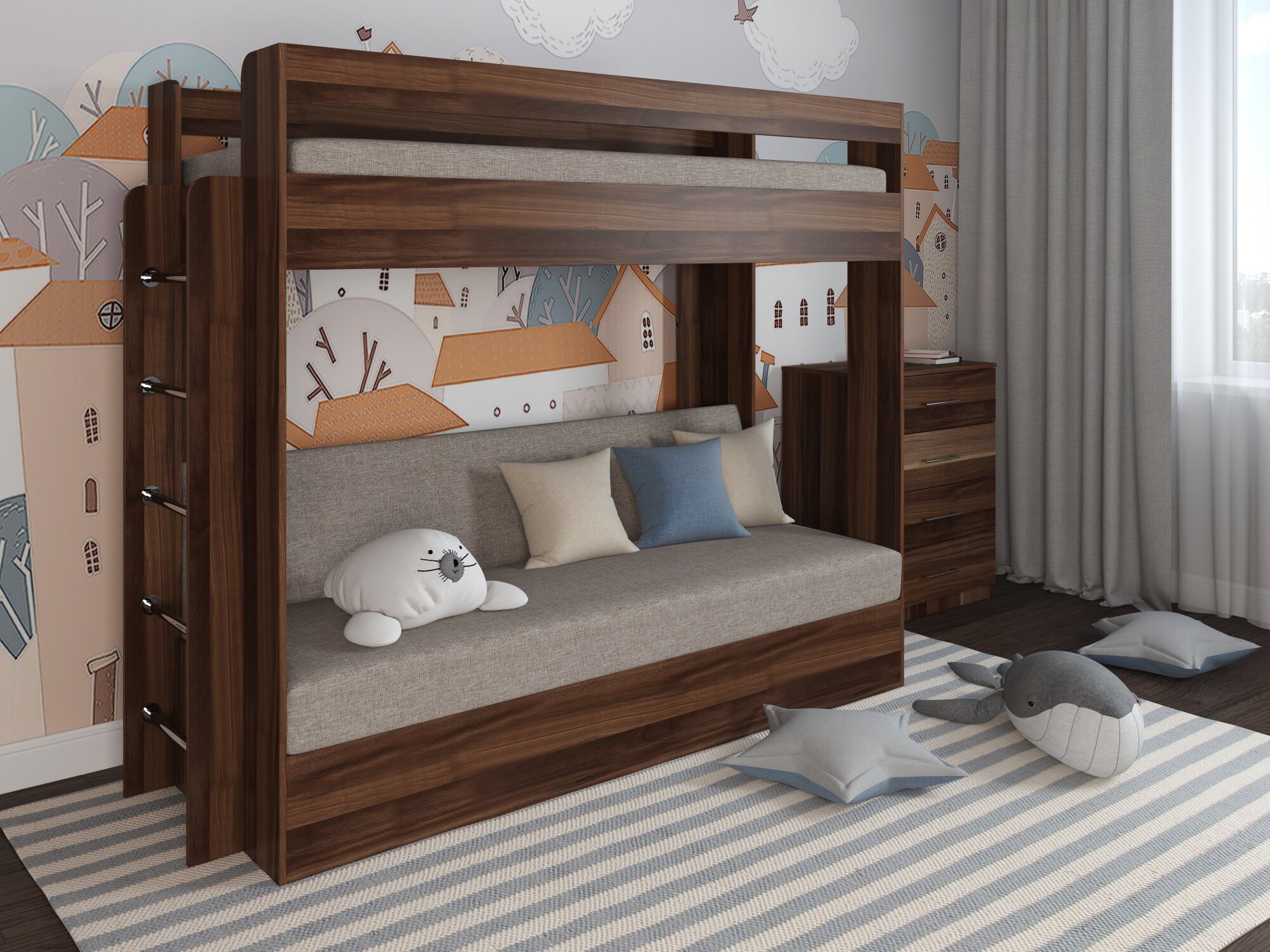 Кровать двухъярусная с диваном Есэндвич Лаворо (Анкор темный/Анкор светлый/Savana Hazel) 42 390 ₽