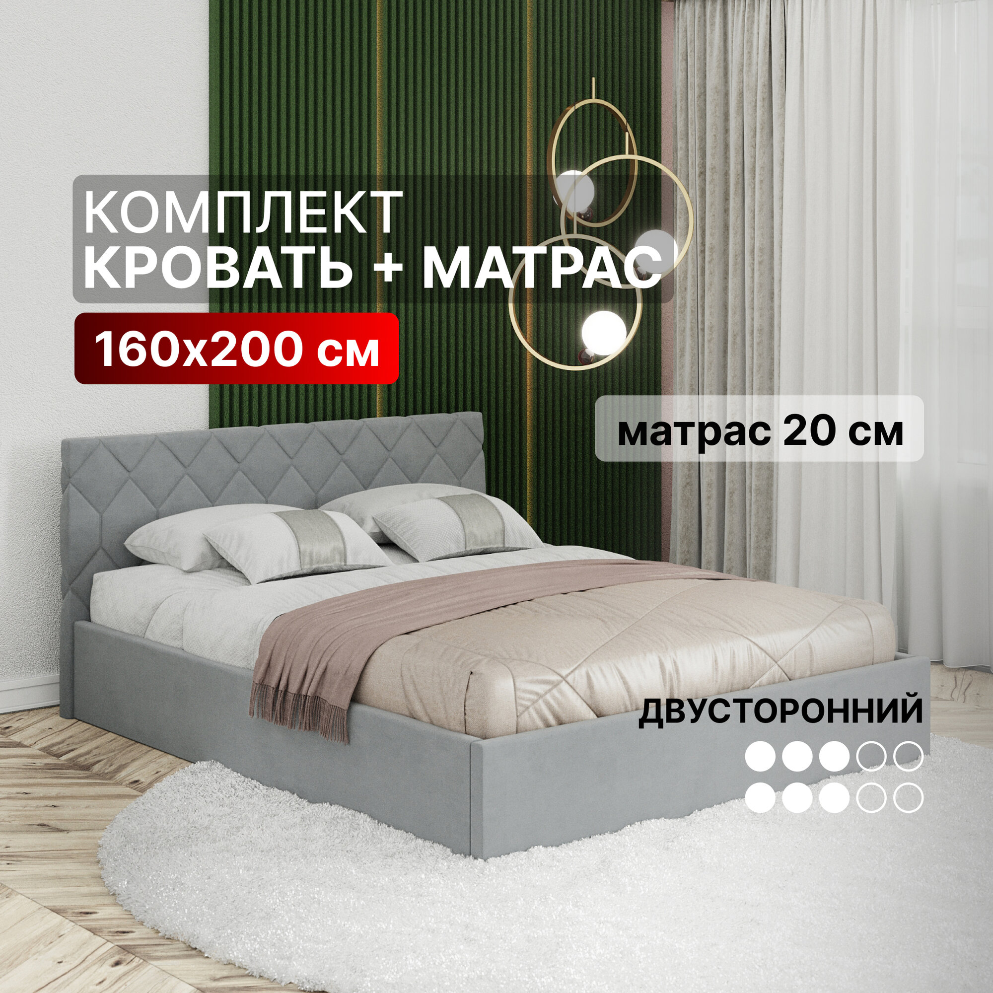 Кровать 160х200 с матрасом c подъемным механизмом и местом для хранения Техас New светло-серый информация: