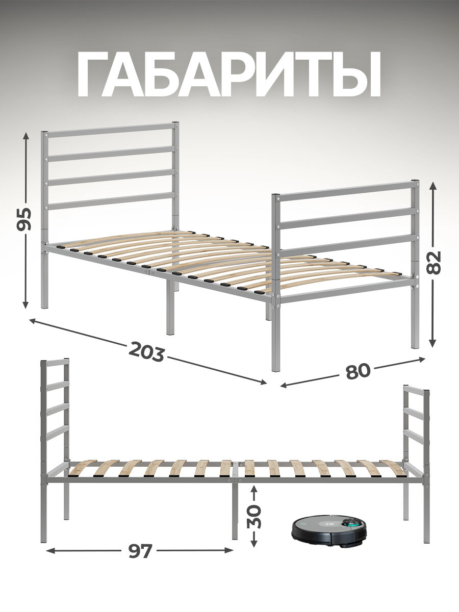 10 цен на Кровать металлическая Металика Г4+Г3 80х200 серая с держателями для матраса и доп. опорами