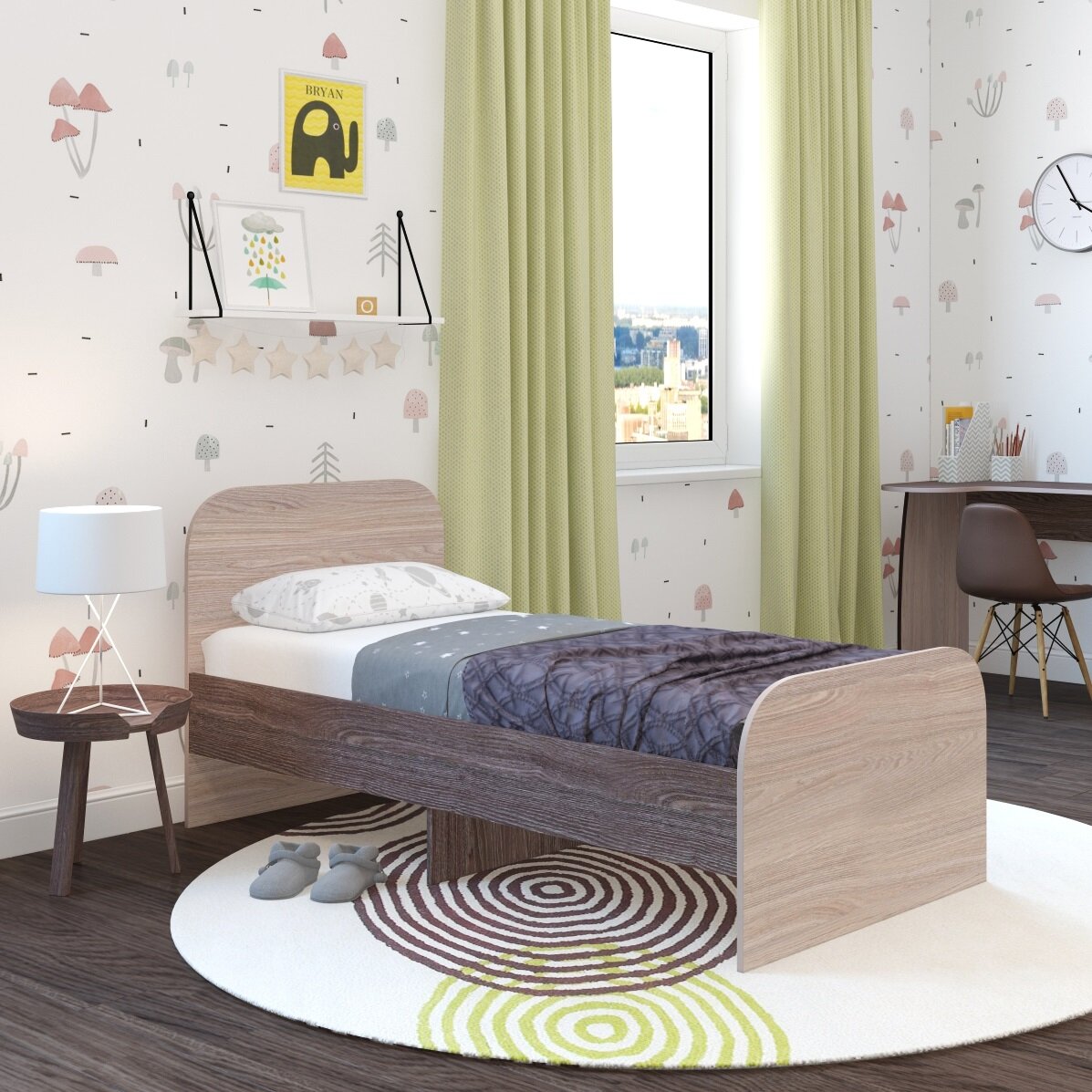 10 цен на Кровать односпальная 90х190, в спальню, в детскую, Есэндвич Лаворо, 193,2х93,6х80 см (Анкор тёмный/Анкор светлый)