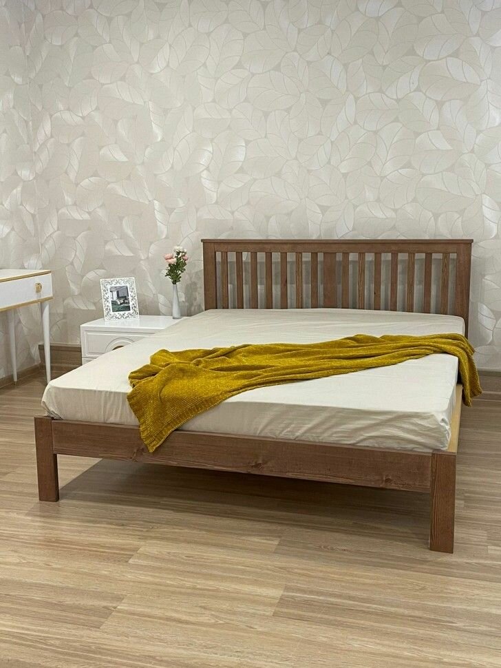 Двуспальная кровать 140х200 Фаби деревянная, из сосны, цвет Палисандр