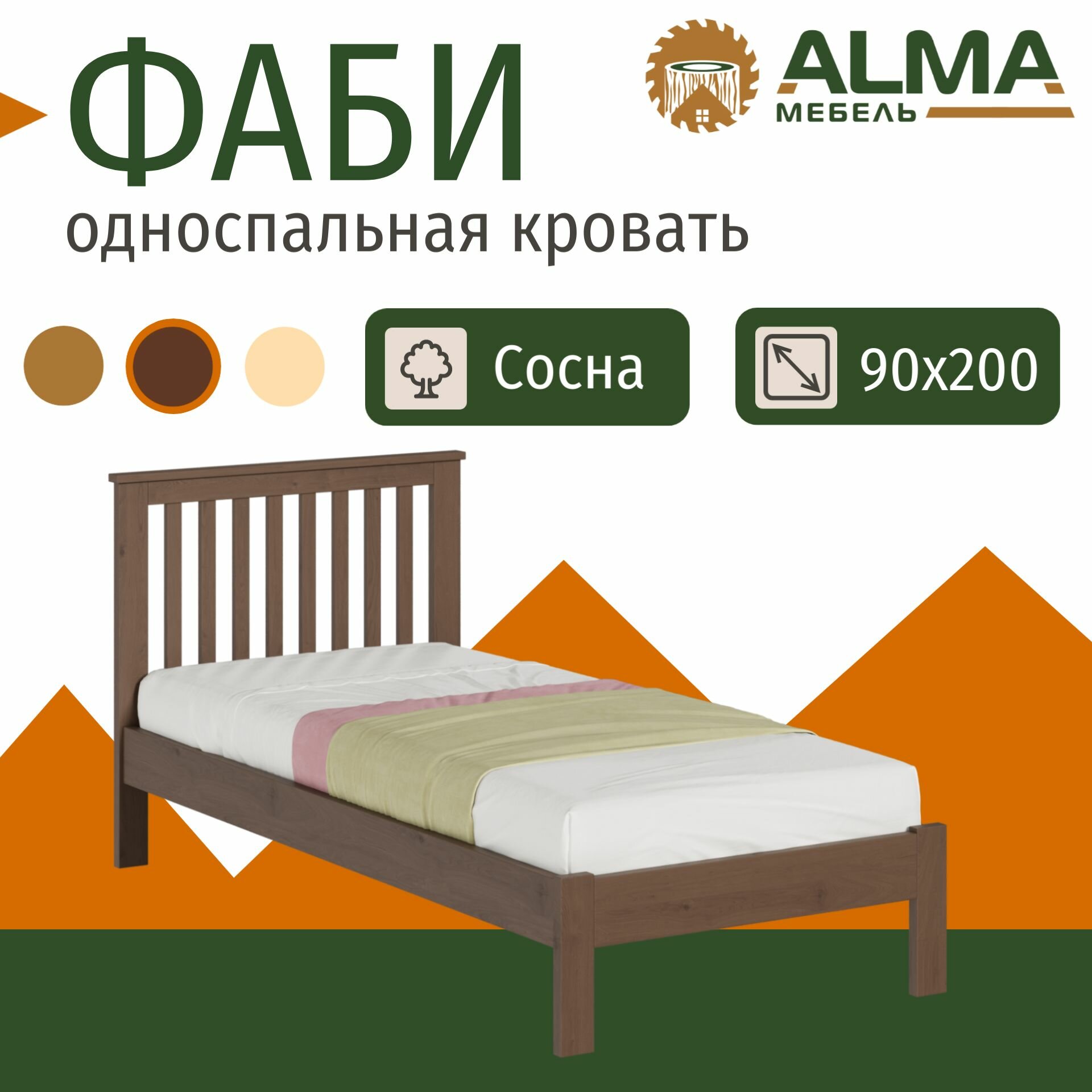 10 цен на Односпальная кровать 90х200 Фаби деревянная, из сосны, цвет Палисандр