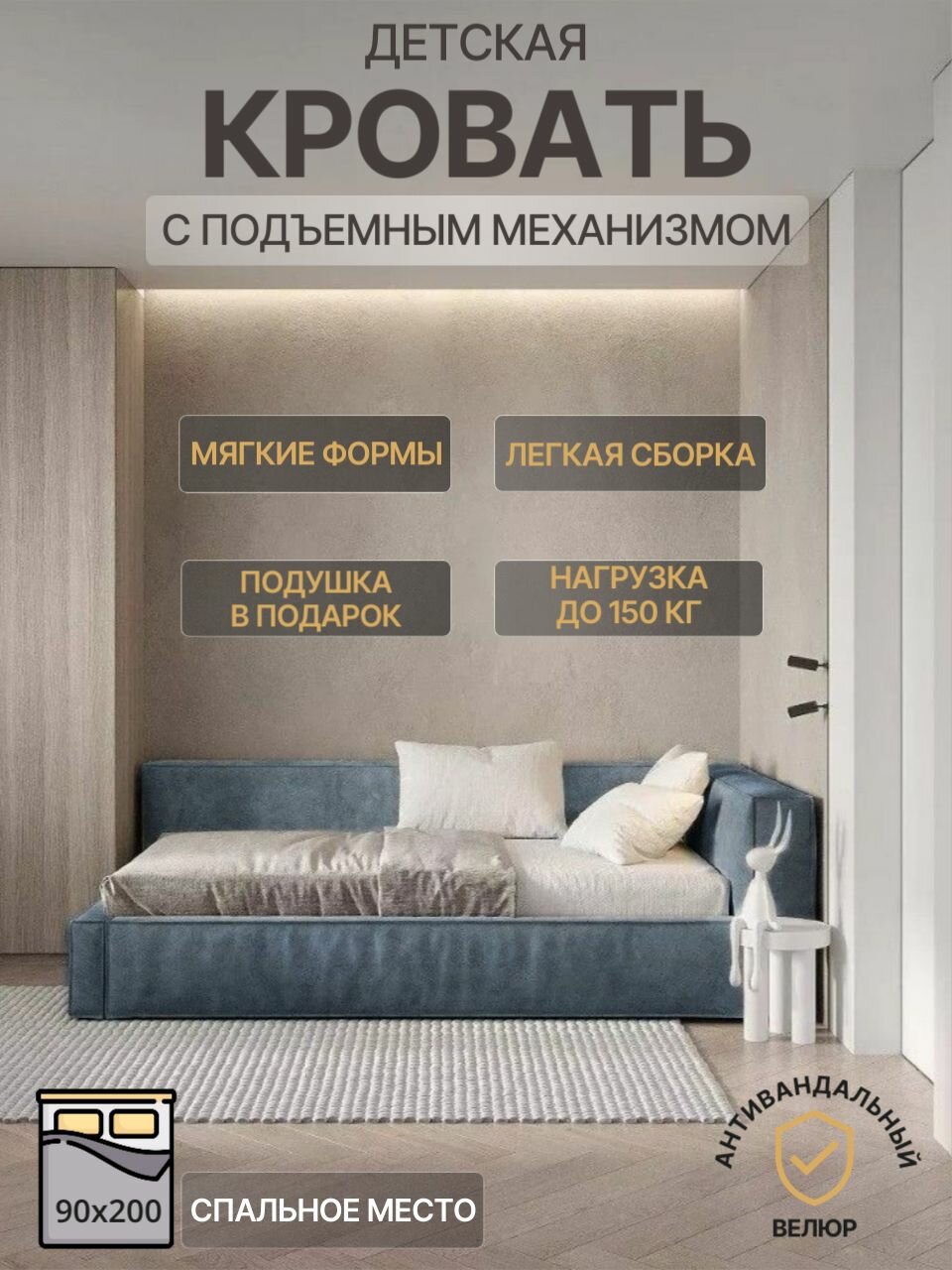 Мягкий диван кровать детская/ подростковая софа с подъемным механизмом асти 90х200 правая