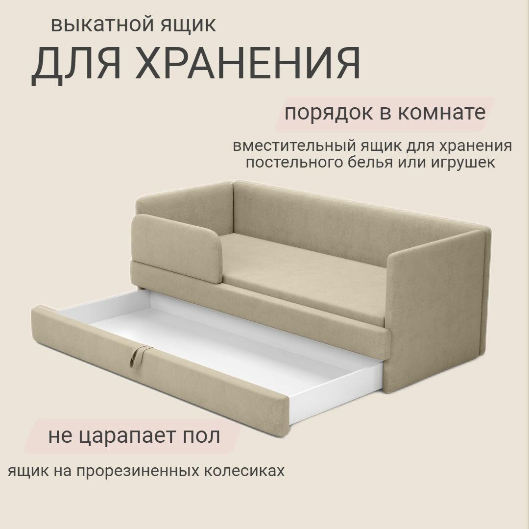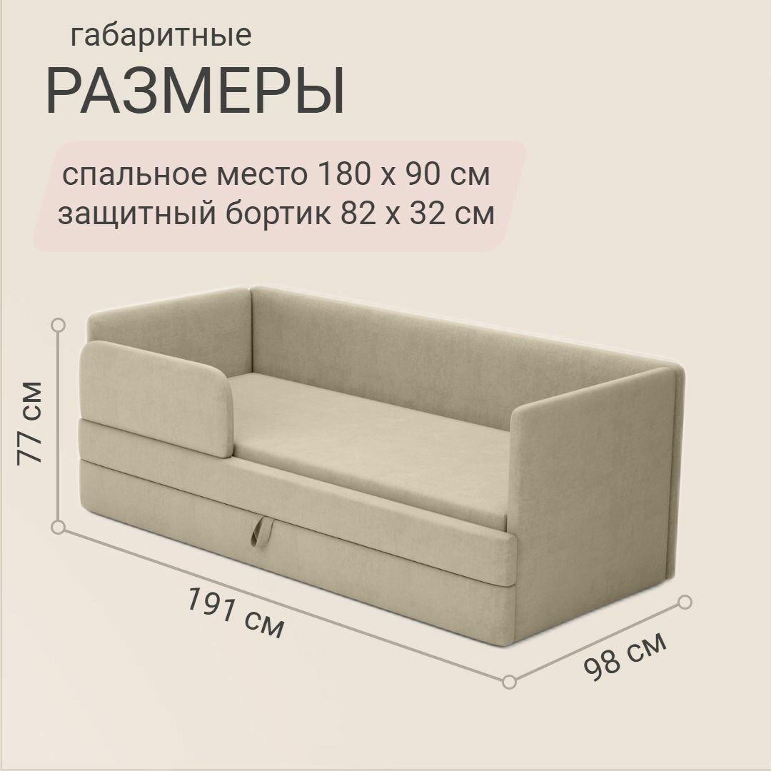 Детский диван-кровать Майя 180х90 см бежевый с выкатным ящиком и бортиком Кровать детская от 3х лет Без матраса информация: