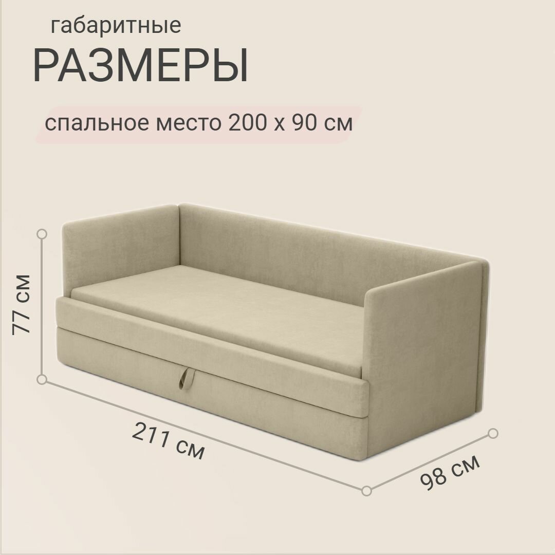 Детский диван-кровать Майя 90х200 см бежевый с выкатным ящиком Кровать детская от 3х лет Без матраса информация: