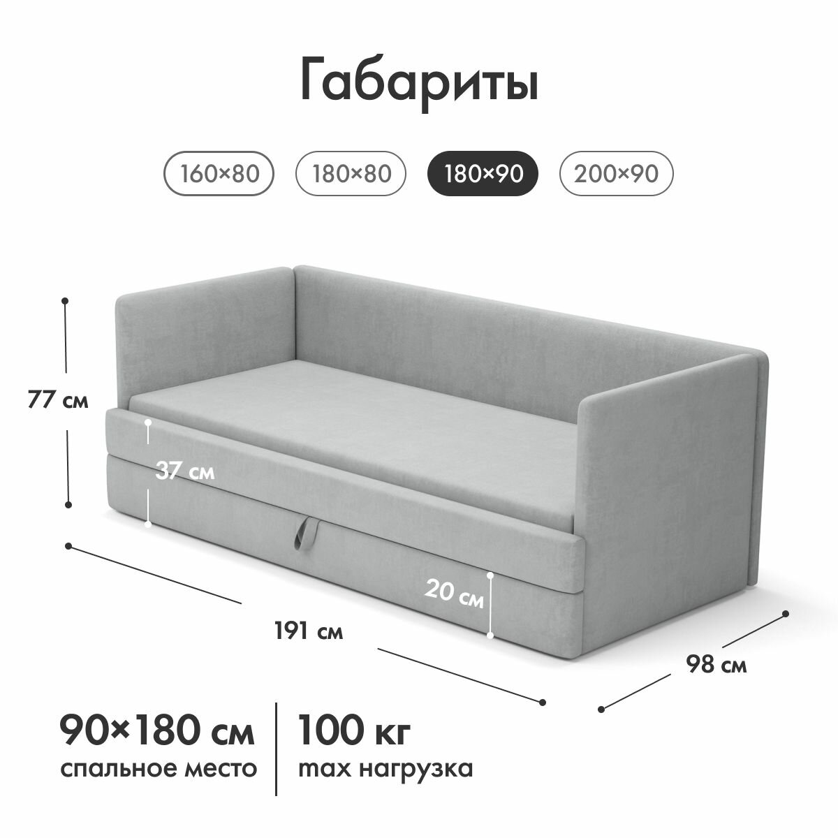 Детский диван-кровать Майя 180х90 см серый с выкатным ящиком Кровать детская от 3х лет Без матраса информация: