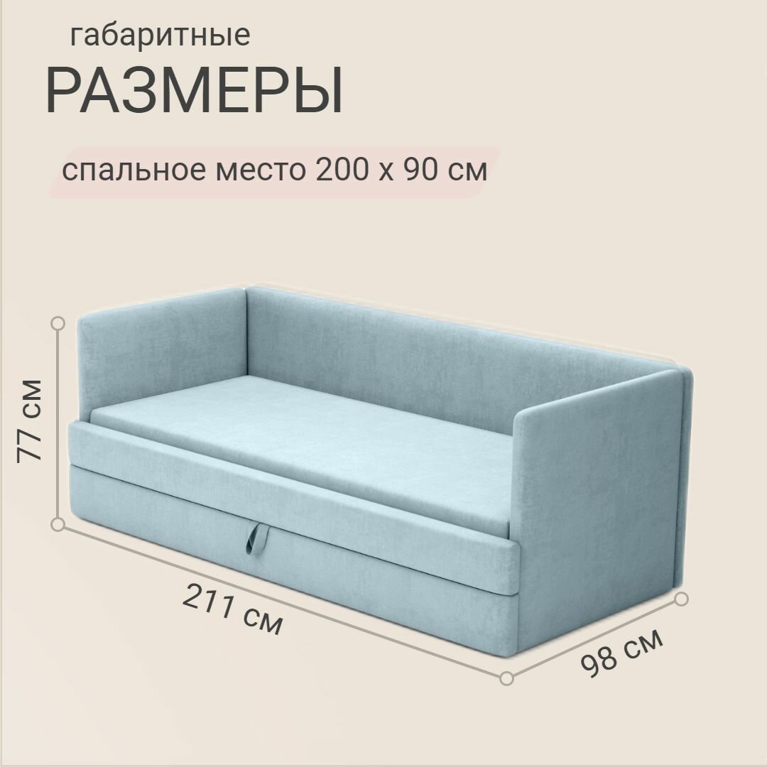 Детский диван-кровать Майя 90х200 см голубой с выкатным ящиком Кровать детская от 3х лет Без матраса информация: