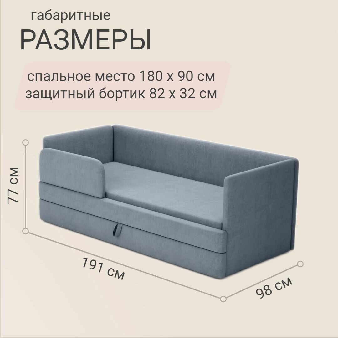 Детский диван-кровать Майя 180х90 см графитовый с выкатным ящиком и бортиком Кровать детская от 3х лет Без матраса информация: