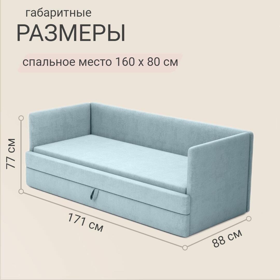 Детский диван-кровать Майя 160х80 см голубой с выкатным ящиком Кровать детская от 2х лет Без матраса информация: