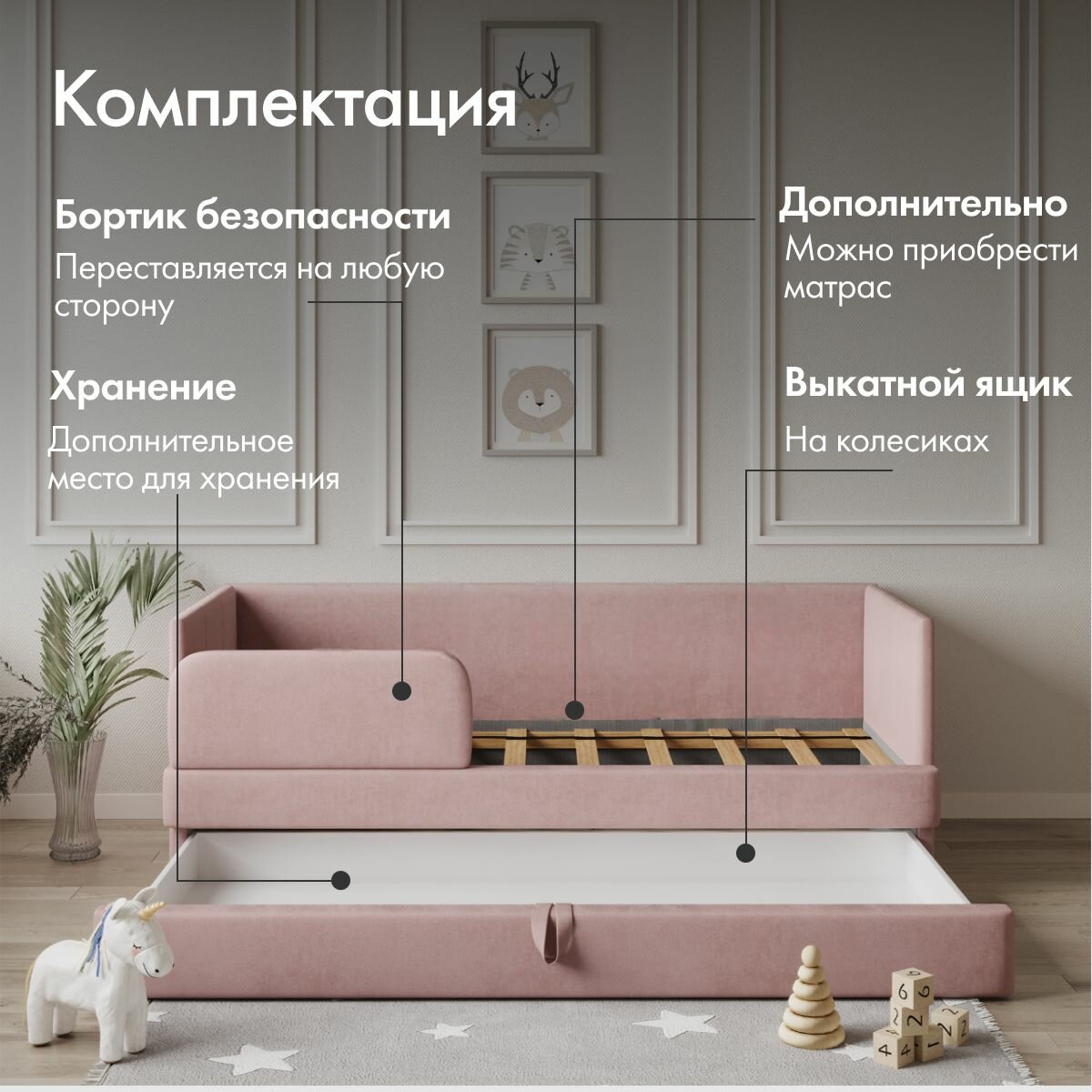 Детский диван-кровать Майя 180х80 см розовый с выкатным ящиком и бортиком Кровать детская от 3х лет Без матраса информация: