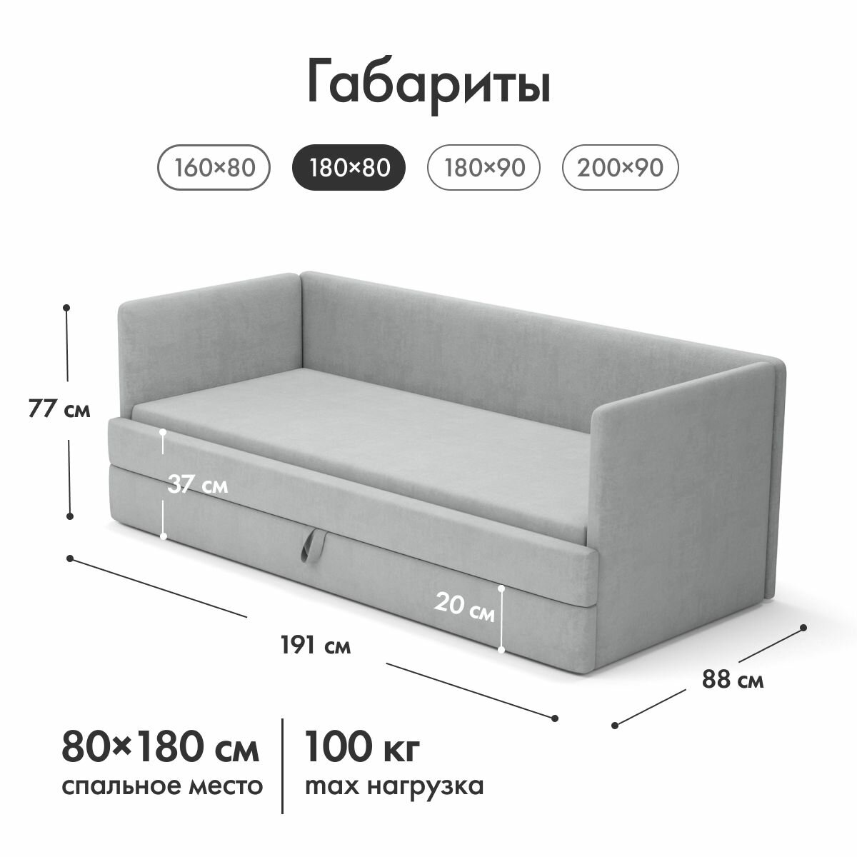 Детский диван-кровать Майя 180х80 см серый с выкатным ящиком и бортиком Кровать детская от 3х лет Без матраса 28 250 ₽