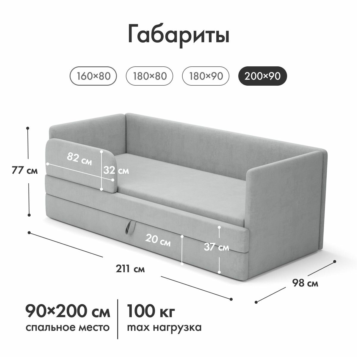 Детский диван-кровать Майя 90х200 см серый с выкатным ящиком и бортиком Кровать детская от 3х лет Без матраса информация: