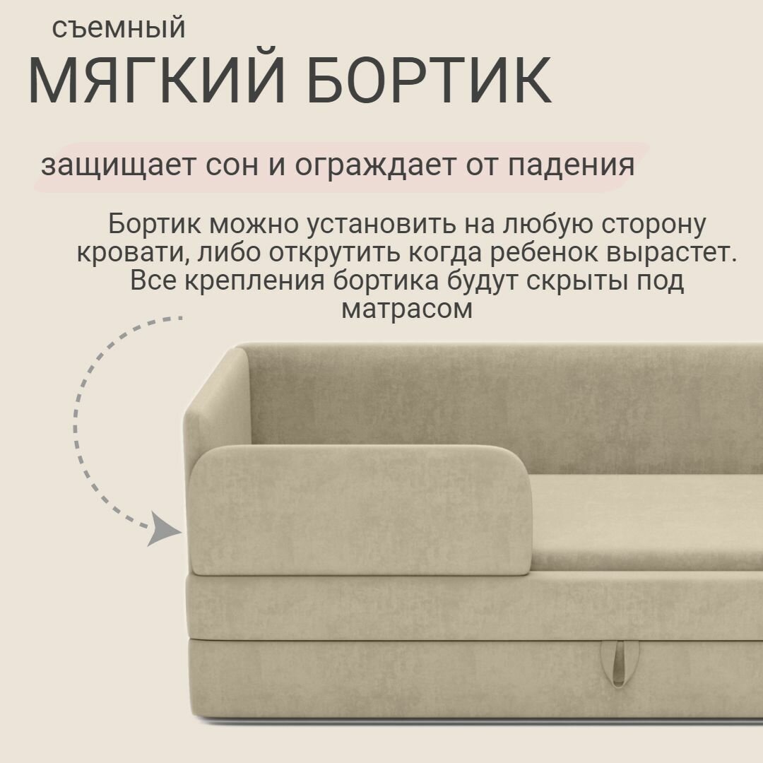Детский диван-кровать Майя 180х80 см бежевый с выкатным ящиком и бортиком Кровать детская от 3х лет Без матраса информация: