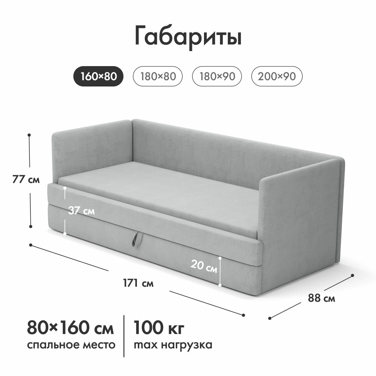 Детский диван-кровать Майя 160х80 см серый с выкатным ящиком Кровать детская от 2х лет Без матраса информация: