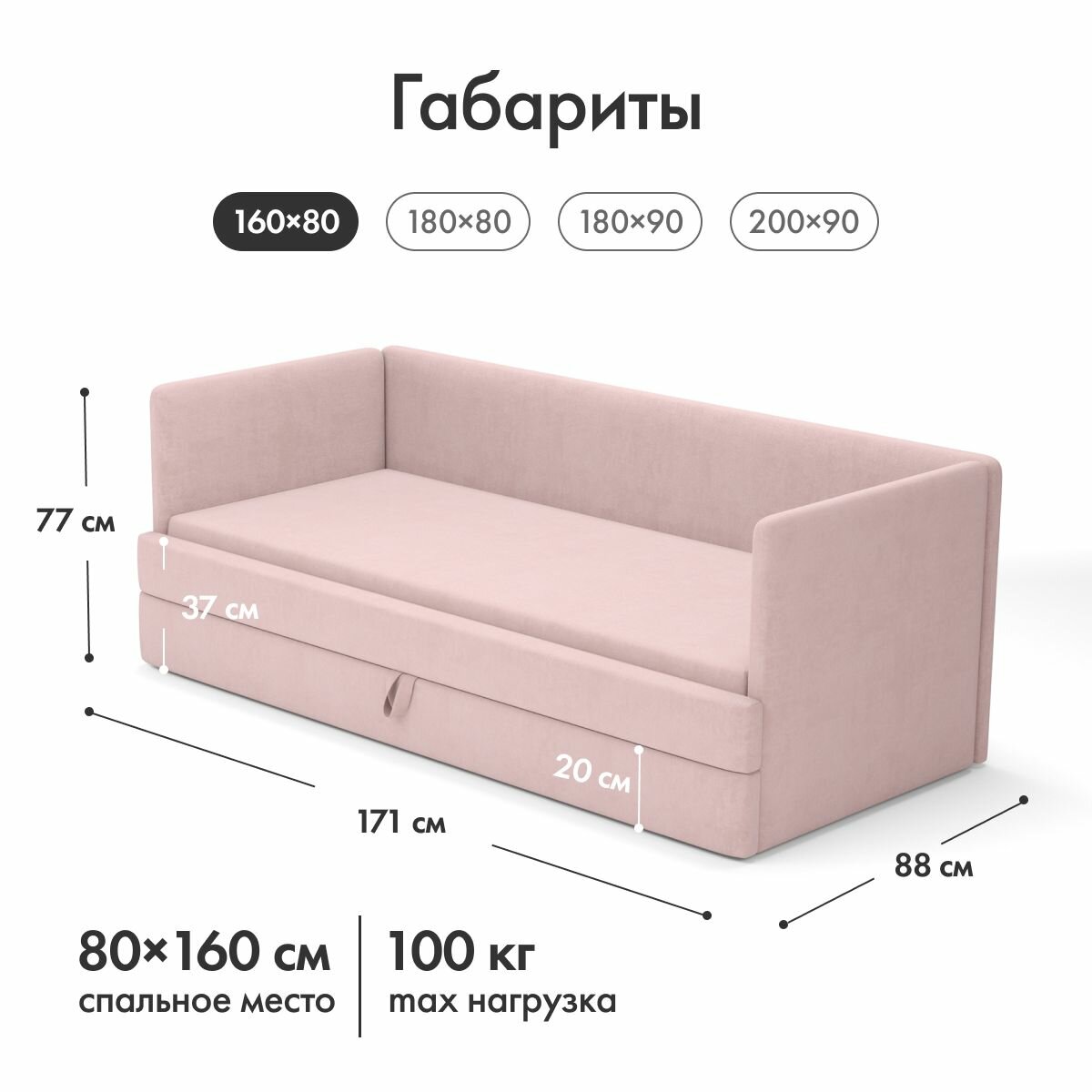 Детский диван-кровать Майя 160х80 см розовый с выкатным ящиком Кровать детская от 2х лет Без матраса информация: