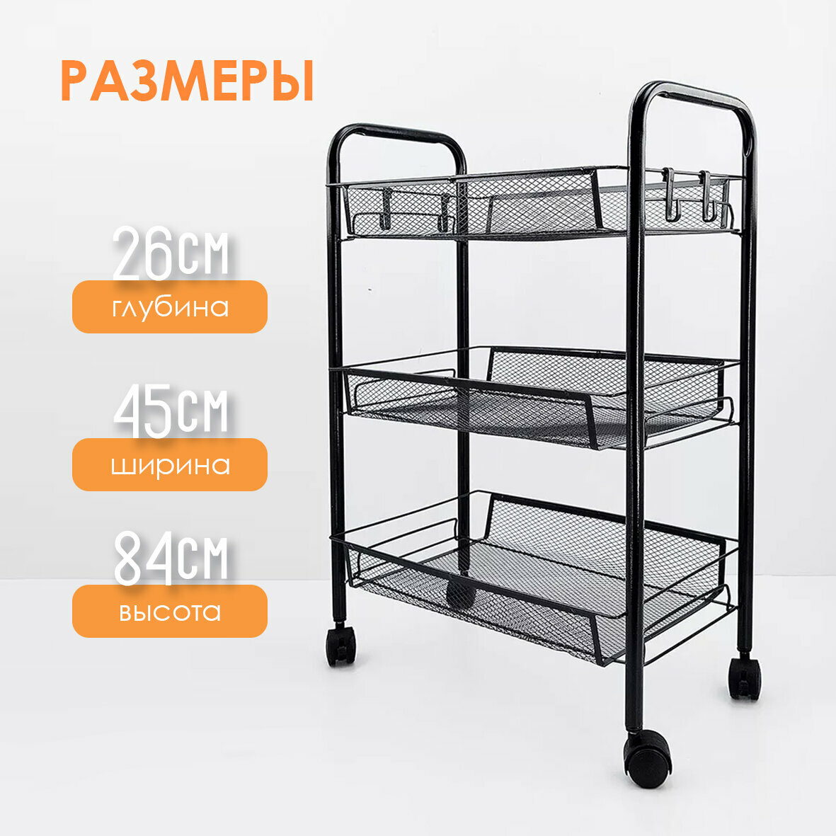 Отзывы на Этажерка для ванной, кухни и прихожей из металла с 3-мя сетчатыми полками на колесах, нагрузка до 15 кг, черный