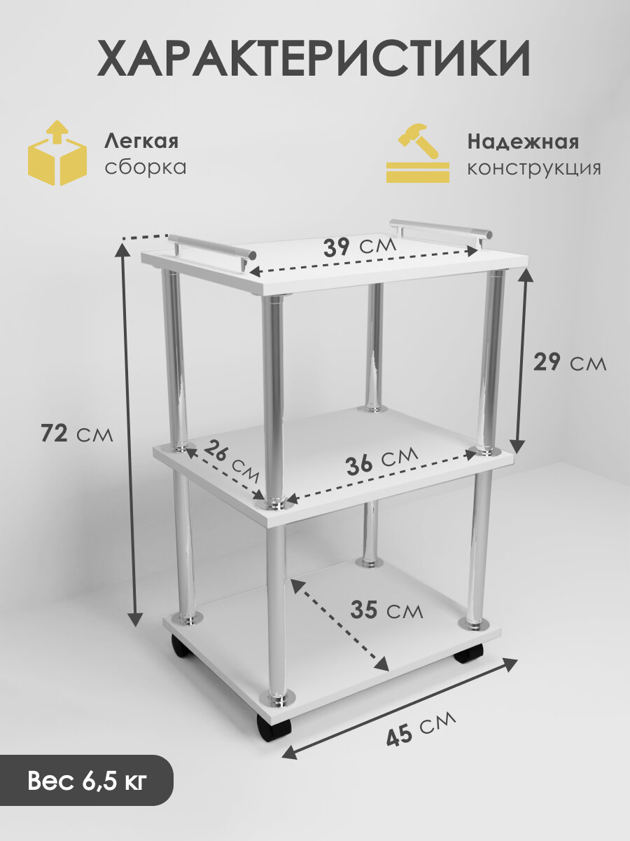 Этажерка на колесиках для кухни, Уютный мастер, 72х45 см, белый информация: