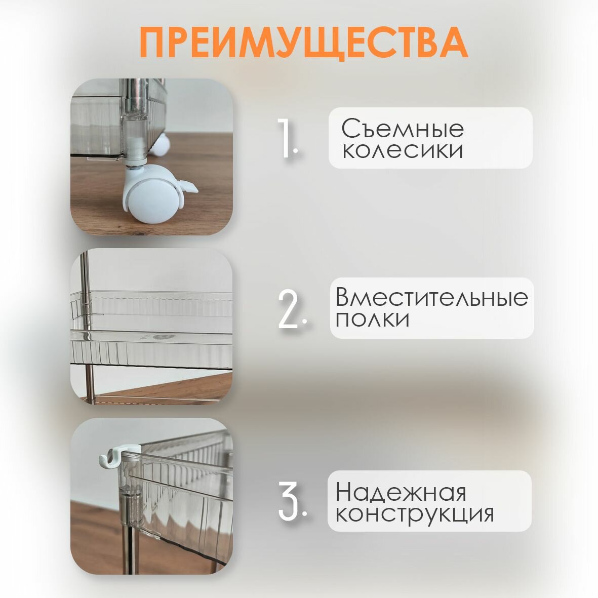 Этажерка для кухни и ванной на колесиках метал/пластик 3-х ярусная информация: