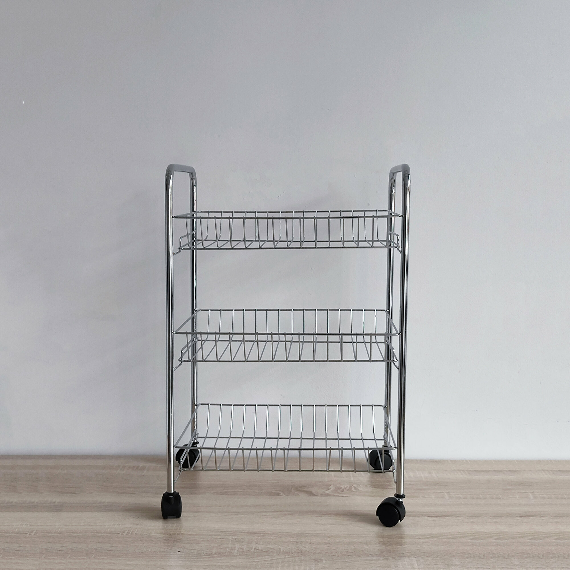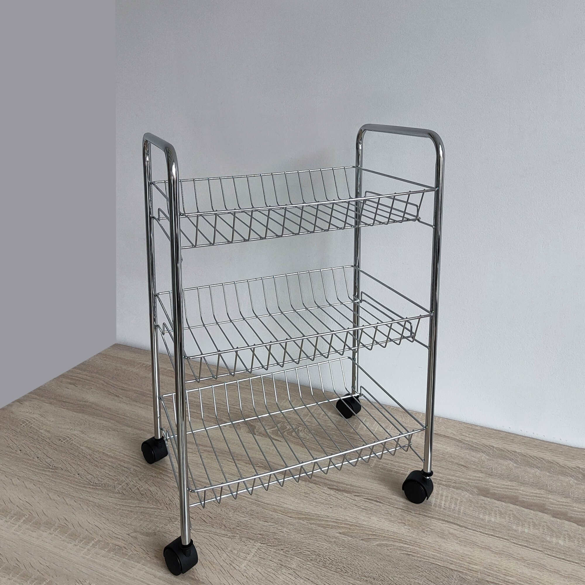 Органайзеры для кухни. 3-х ярусная тележка серая металлическая